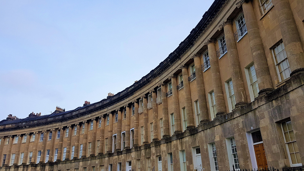 엠마의 집으로 가는 길, 바스의 또 하나의 상징인 로열 크레센트가 내 발길을 붙들었다. 초승달을 닮은듯한 이 특별한 건축물은 사진 프레임에 한번에 다 담기 힘들 정도로 기다랗고 웅장했다. 조지 시대의 상징적인 건축물인 만큼, 테라스하우스와 석조기둥이 차례로 이어지며 유일무이한 거대한 곡선을 그리고 있었다. 무엇보다 로열 크레센트가 남다르게 느껴졌던 건, 두 팔을 벌린듯 초록의 로열 빅토리아 파크를 부드럽게 감싸안고 있는 모습이 참 따뜻해 보여서였다.