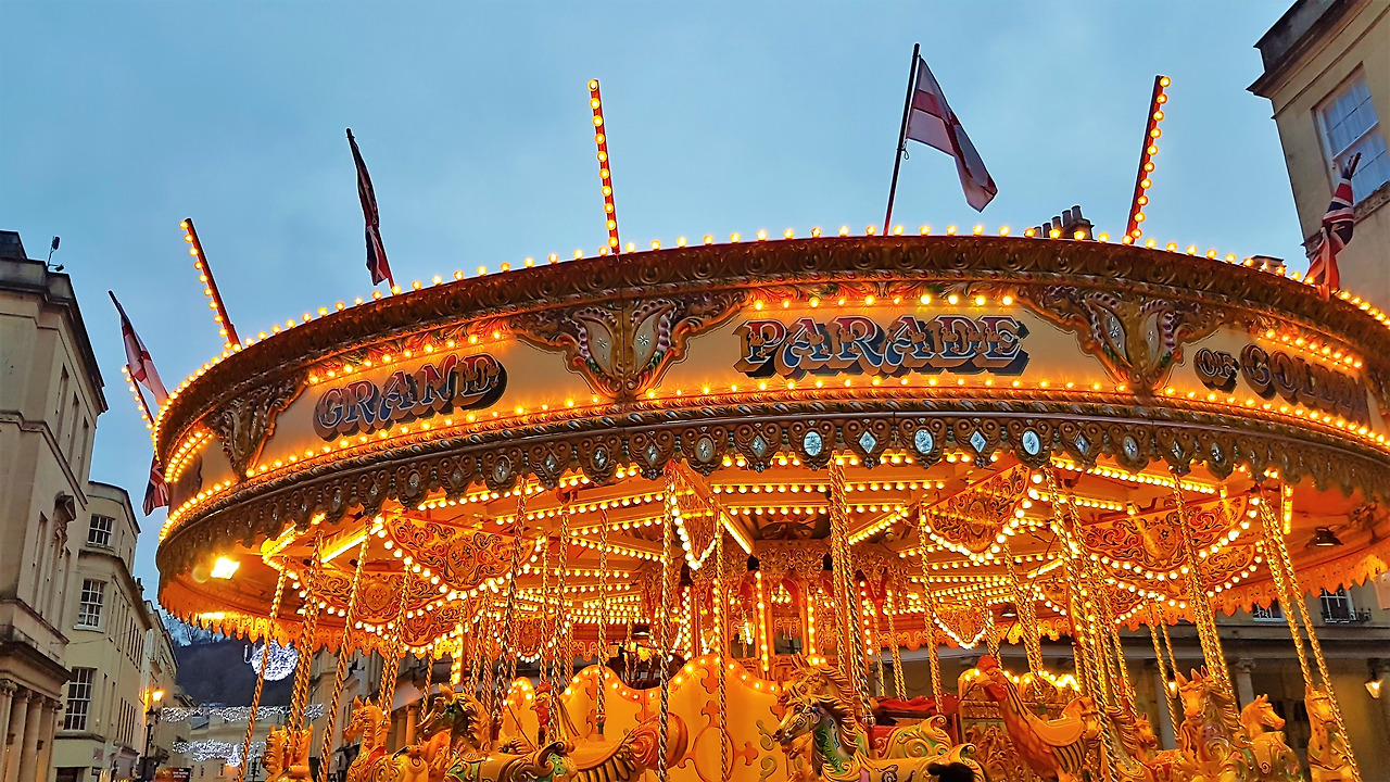 12월은 영국이 가장 반짝이는 시간이다. 일 년 중 최고의 축제인 크리스마스를 앞두고 도시 전체가 황금빛 장식으로 물들기 때문이다. 물론 바스의 겨울도 아름다웠다. 시내로 들어서자 화려하게 돌아가는 회전목마가 ‘짠’ 하고 마법처럼 나타났다. 겨울이 되면 영국 곳곳에 각종 기념품과 먹거리를 파는 크리스마스 마켓이 열리고, 재밌는 놀이기구들이 설치된다. 이 회전목마도 크리스마스 시즌에만 볼 수 있는 한정판 풍경이니, 더욱 특별해 보였다.