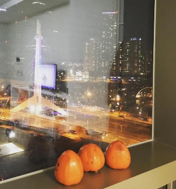 살던 짐은 이삿짐 컨테이너에 맡기고 정말 필요한 것들만 싸서 오피스텔로 가기로 했다. 그런데 밥은 또 해 먹어야 하고 커피도 내려먹어야 했다. 옷이며 뭐며 이것저것 챙기다 보니 짐은 생각보다 많아졌다. 장모님께서 보내주신 대봉감이 있었는데 홍시가 돼야 먹을 수 있었기에 이것도 몇 개 챙겨가기로 했다. 감이 다 익어갈 때쯤에는 우리 집으로 들어갈 수 있겠지. 오피스텔에 들어가니 이미 한밤중이었다. 야반도주하는 것도 아니고 살림살이 주렁주렁 들고 이게 뭐람.