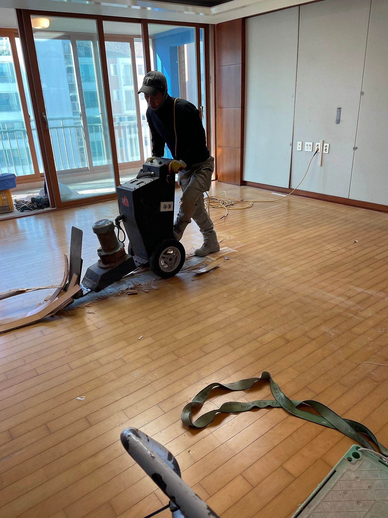 마루 바닥에는 시간이 남긴 흔적이 고스란히 남아 있었고, 북쪽 발코니는 비만 오면 바닥에 물이 흥건했습니다. 화장실 실리콘에는 곰팡이가 어김없이 피어났습니다. 무엇보다도 문제는, 그동안 버리지 못한 물건들이었습니다. 43평 집은 여백 없이 채워져 있었습니다.