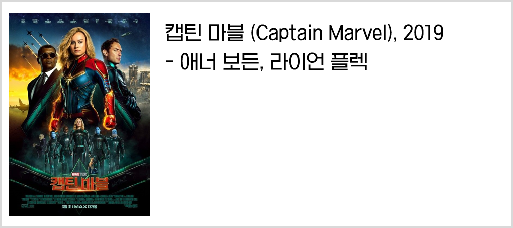 2009년 40억 달러의 금액으로 디즈니에게 인수된 마블 역시 마찬가지 행보를 보인다. 마블은 이미 ‘블랙 팬서’를 통해 히어로 무비의 틀 안에서 흑인영화를 구현하여 한 차례 센세이션을 불러일으켰다. <캡틴 마블>은 여성 히어로를 전면에 내세우며 히어로 무비의 유리천장을 깼다.