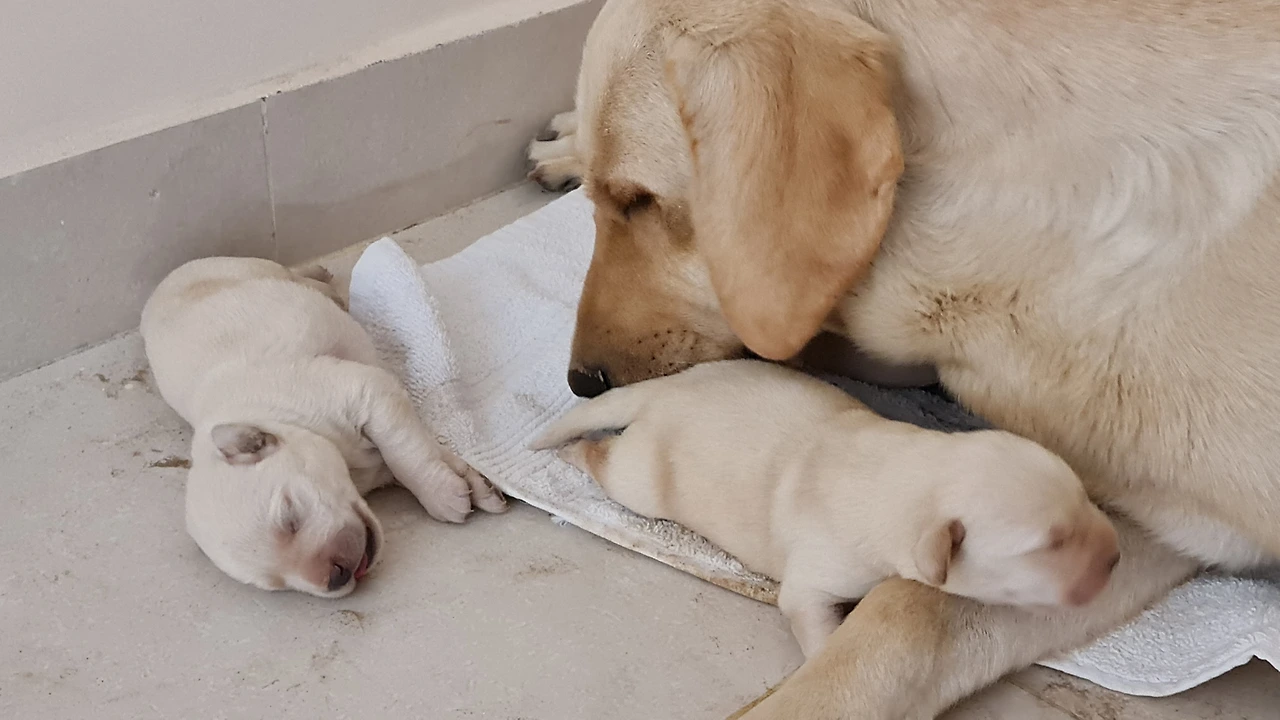 엄마개 배가 아직 불러있는데, 아직 네 마리가 덜 나왔습니다. 엄마개는 초산이고 자기도 아직 두 살배기 장난기 가득한 덩치 큰 강아지일 뿐인데 아홉 마리나 낳았어요. 세상에. 헉... 아홉 마리나 어떻게 키워... 조만간 사택이 101마리 리트리버 되는 거 아냐... 걱정했는데.....
