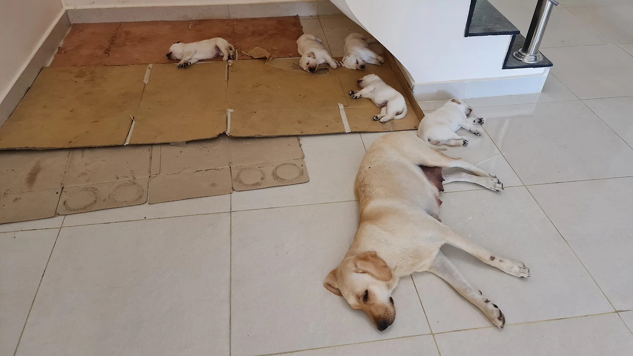 지사 사택에는 리트리버 강아지 두 마리를 키웁니다. 늘상 강아지인 줄 알았는데 어느덧 훌쩍 커버려서 만 두 살배기 성견이 되었네요. 어느 날 암컷이 배가 불러온다 싶더니, 제가 잠깐 무자파라바드 출장을 가고 없던 지난날 초(6월 1일) 새끼를 낳았습니다. 그것도 아홉 마리나요.