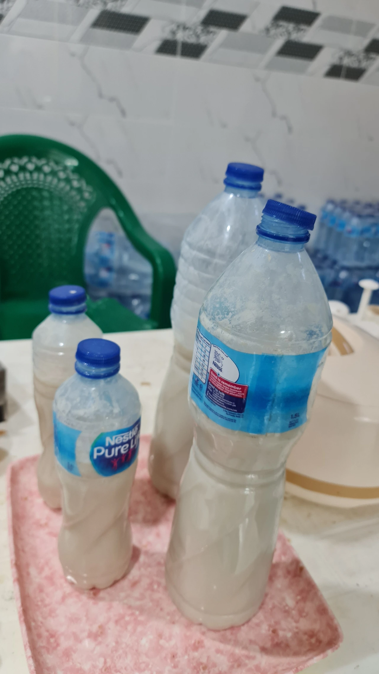 다만, 1.5리터 생수통에 막걸리 키트 가루를 섞으면 당연히 넘치니까, 따로 섞어다가 500mL 생수병 두 개를 더 준비했다.