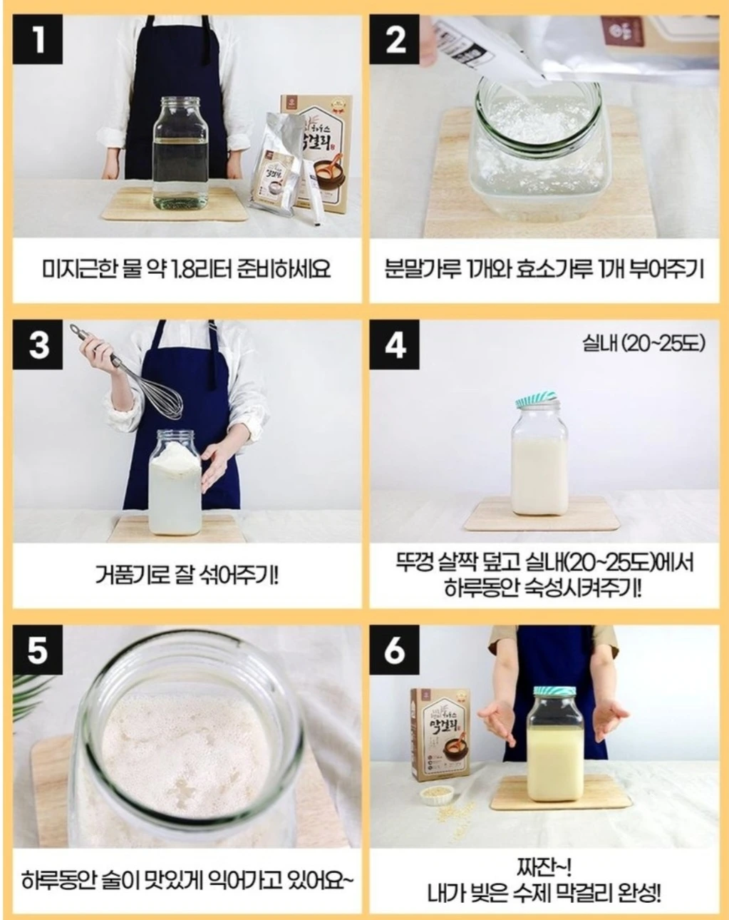 물 1.5리터(취향따라 2.0리터도 가능)에다 큰 파우치 작은 파우치 모두 뜯어 잘 섞어 상온에서 하룻밤만 재우면 끝! 너무 쉽나? 다른 기교 필요없다. 진짜 이게 끝.