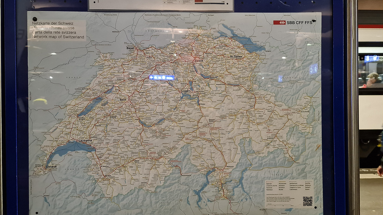 스위스는 태반이 산지일뿐더러 국토 면적 자체가 그리 넓지 않다.(스위스 면적 41,285km², 대한민국 면적 100,210km². 대한민국의 절반이 채 안 된다.) 스위스를 여행하는 내내, 나는 스위스의 철도노선표가 마치 "서울 지하철 노선도" 같다는 느낌을 많이 받았다. 열차표를 보는 방법이나, 환승하는 방법이나 서울의 지하철과 별반 다를 게 없다.