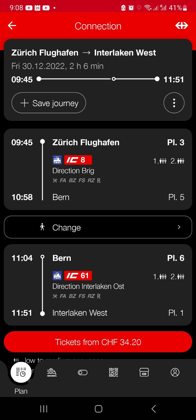 스위스 열차에 관한 모든 정보는 SBB 어플 하나면 다 조회된다.