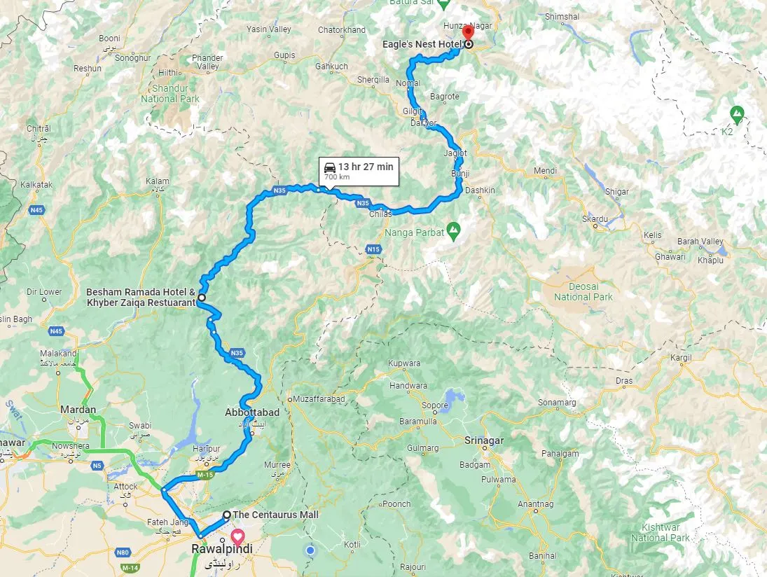 이슬라마바드에서 베스함 라마다 호텔까지의 여정