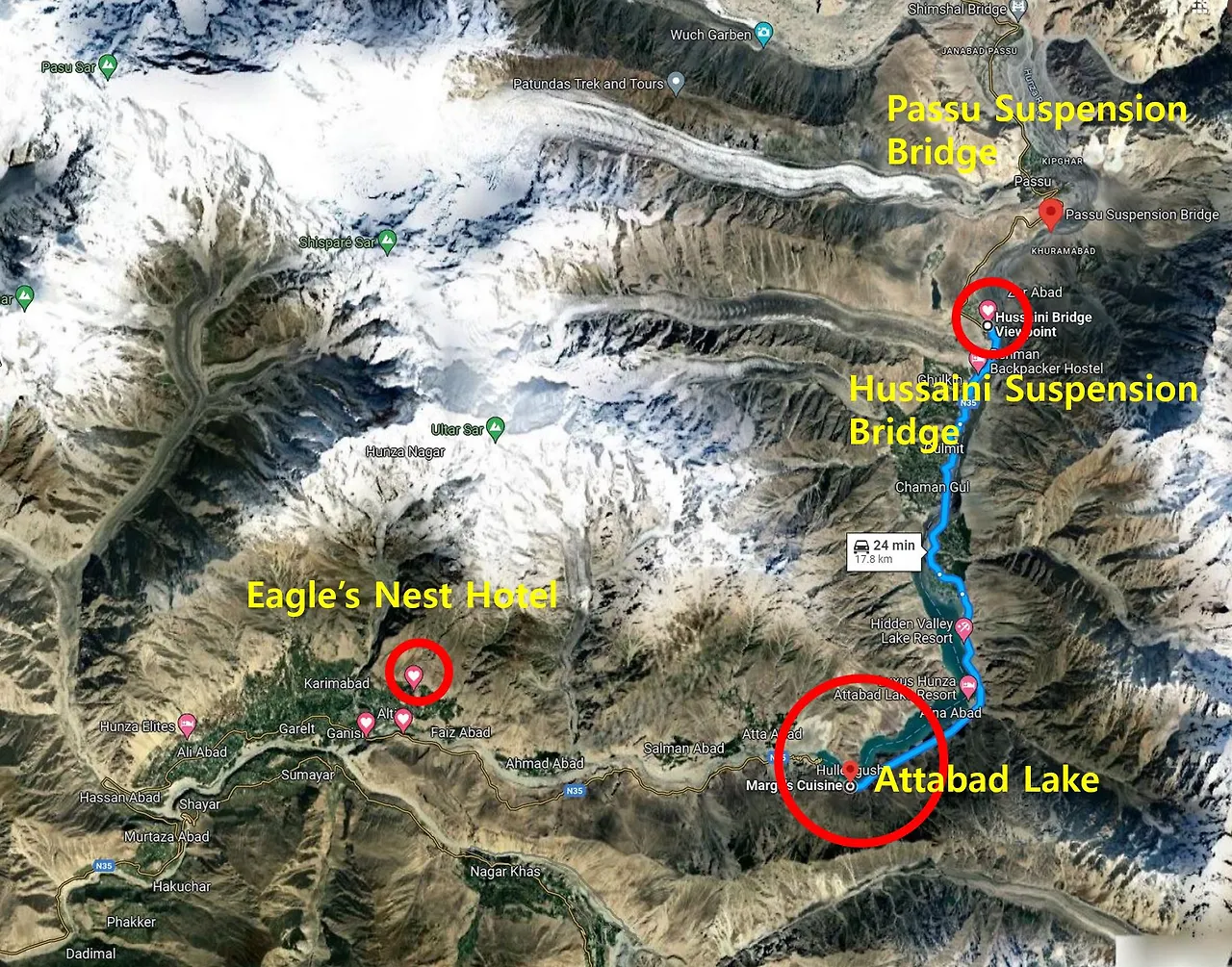 '파수 코네스' 또는 '파수 대성당'으로도 알려진 투퐆단(6,106m)는 고잘 계곡의 굴미트 마을 북쪽에 있습니다. 그것은 그 지역에서 가장 사진이 많이 찍힌 봉우리입니다. -위키피디아, Passu 편 부분발췌 번역 -