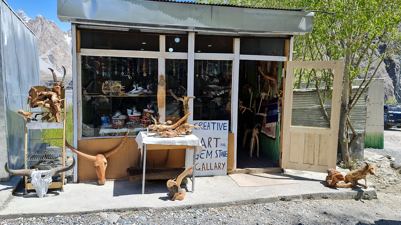 후사이니 출렁다리를 관광하고 다시 주차장으로 돌아가는 길에 있던 나무 공예 상점. 보석도 같이 판다.