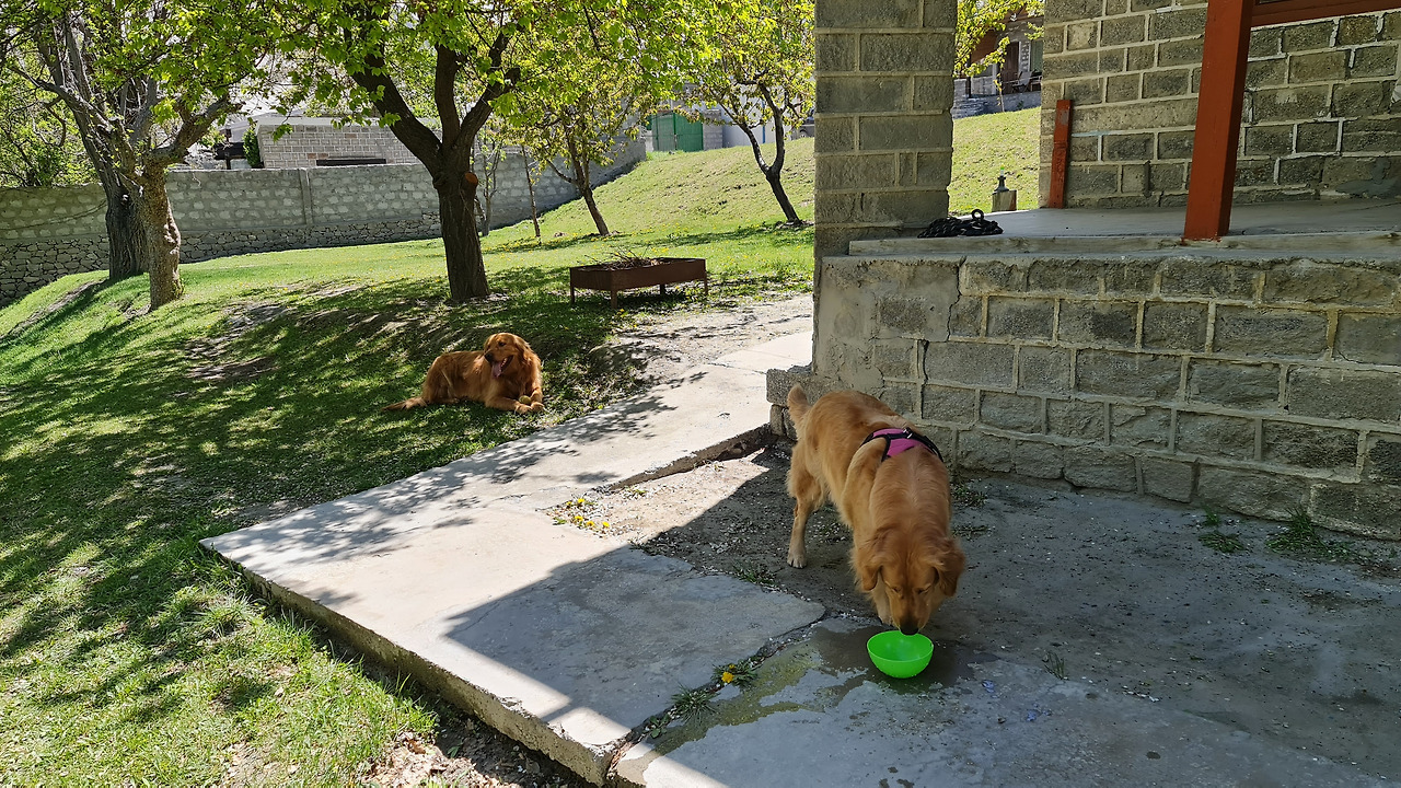 대형견 두 마리가 겅중거리며 반기고(무섭다. 저리 가주라...)