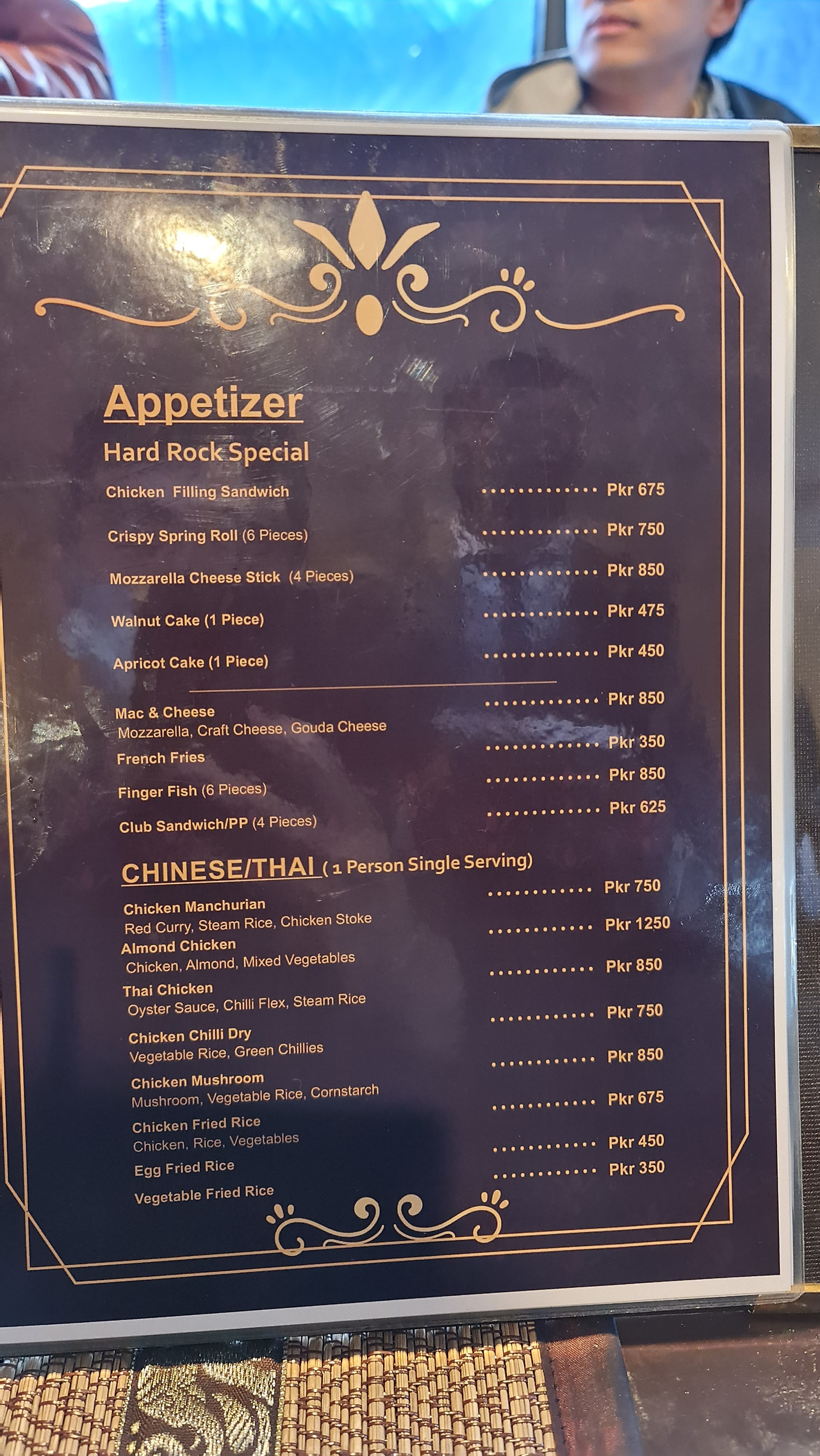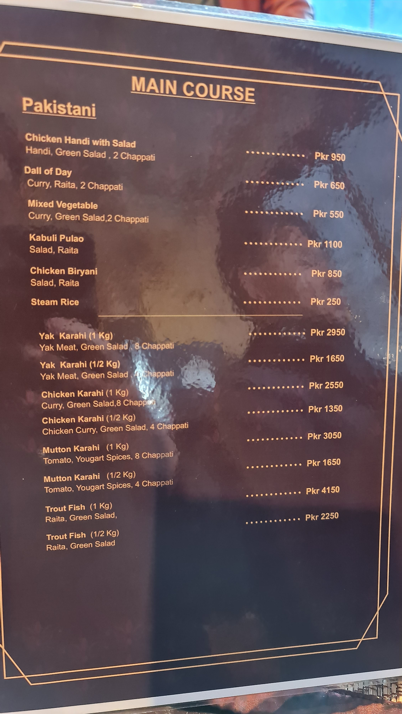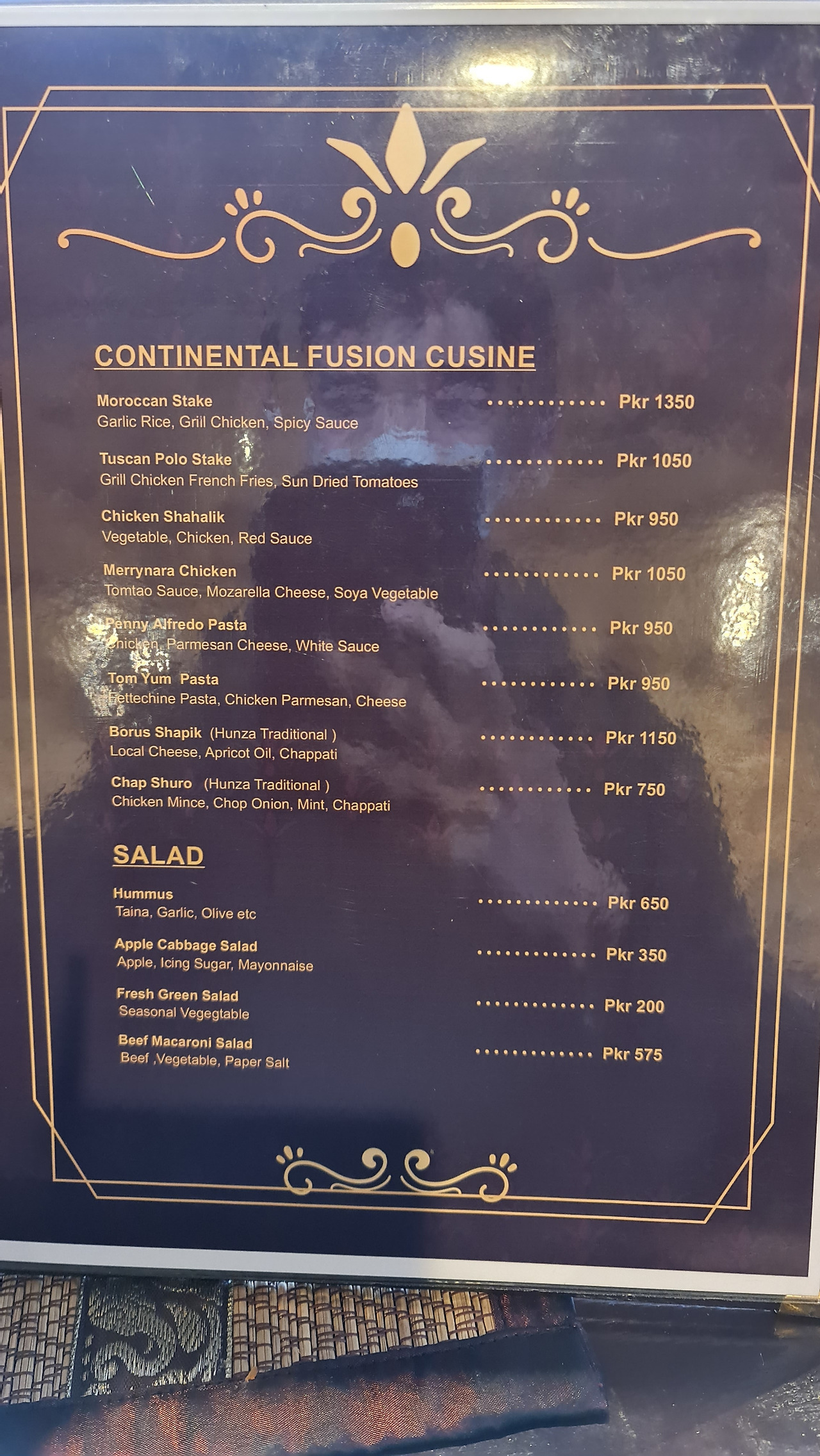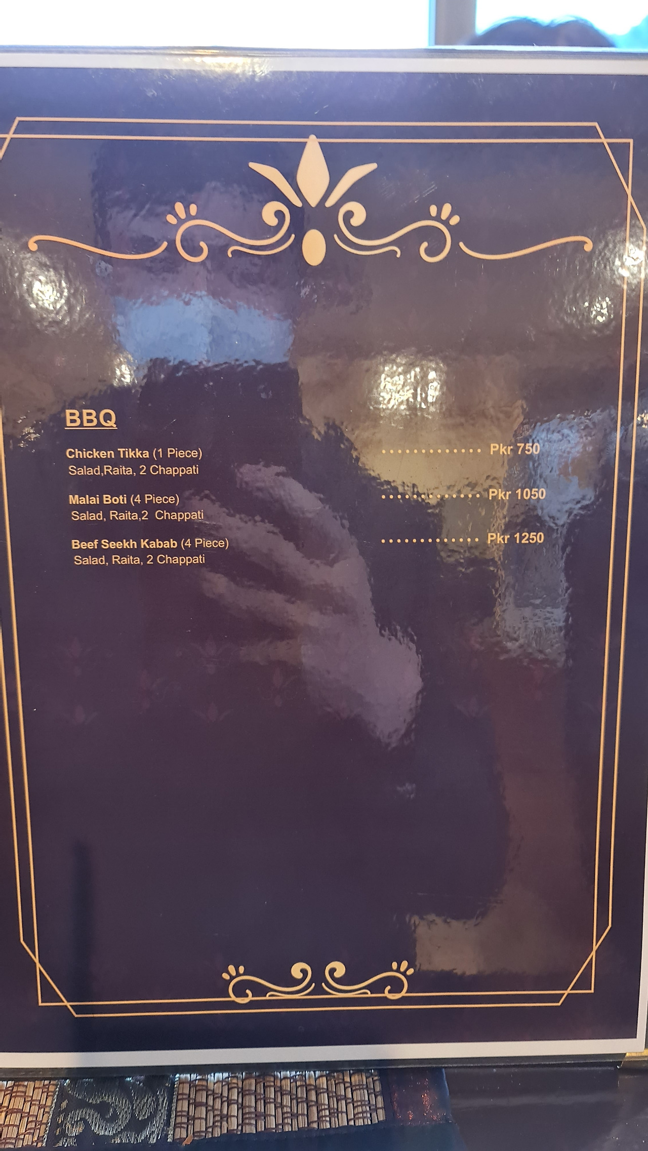 파키스탄 서민층이 오기 부담되는 가격대의 레스토랑이다.(파키스탄 물가 대비 그렇다는 말이고, 실제론 단품 메뉴가 1만 원이 넘어가는 메뉴가 극히 드물다.) 가죽커버로 힘을 준 메뉴판은 "나 뼈대 있는 수준높은 레스토랑"하고 힘주는 것 같다.