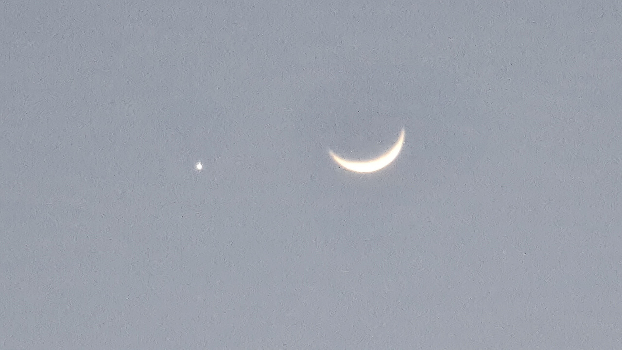 초저녁 하늘에 초승달과 별이 하나 보인다.(천문학도가 아닌지라 저게 별인지 행성인지는 모르겠다. 초저녁에 너무 밝게 빛나서 행성-아마도 목성-일 가능성이 더 커 보이지만 일단 별이라 치자.) 빛나는 별과 달을 한 장의 사진에 동시에 담고 있으니 파키스탄 국기가 연상이 된다.