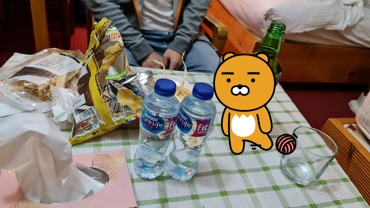 둘째 날은 남쪽에서 미리 공수해 온 초록병을 앞에 두고 호텔방에서 여행동료와 담소를 나누다가... 죽는 줄 알았다. 가져온 거 다 마시고 자느라고. 역시 기분 좋다고 나이 무시하고 무리하면 안 된다...