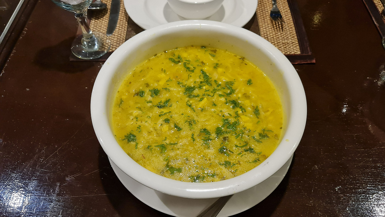 이 수프는 생강, 마늘, 쿠루트(Quroot), 국수, 양파, 닭고기, 강황가루 등이 다양하게 들어간다.(요리사에 따라 닭고기 대신 양고기를 쓰기도 하고, 말린 과일을 넣기도 하고 레시피는 조금조금 달라진다.) 쿠루트(Quroot)는 요구르트 볼이라고도 알려져 있는데 길깃 발티스탄, 아프가니스탄 등에서 요리재료로 흔하게 사용되는 음식이다. 쉽게 말해 플레인 요거트를 말린 거라고. 훈자 수프에서 쓰이는 국수는, 한국식 잔치국수가 아니고 짜파티를 대충 칼질해서 만든 밀가루 조각 개념. 국수라기보다 사이즈가 작은 수제비라고 하는 게 더 가깝겠다. 걸쭉~하고 약간 시큼하면서도 밀가루 단 맛도 잘 어우러진, 한국인이 먹기에도 거부감 없는 맛이었는데, 사실 정확하게 묘사하기엔 시간이 너무 흘러서 정확히 기억이 안 난다. 이래서 맛도락 맛기행 다니는 작가님들은 먹다 말고 메모하고 사진 찍고 그러시는 거구나. 나는 그 정도 열정이 있는 사람은 아니라서.