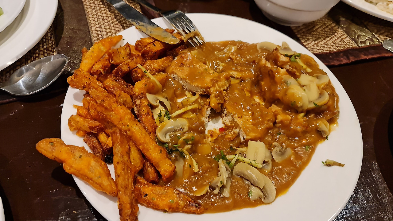 이왕 플렉스 하러 왔으니 스테이크나 썰어보자 해서 무리해서 시킨 메뉴인데, 닭고기가 나왔다. 이게 뭥미? 메뉴판을 재확인했더니 이제서야 Grill Chicken이란 글자가 들어온다.... 안 보고 시킨 내 탓이요...