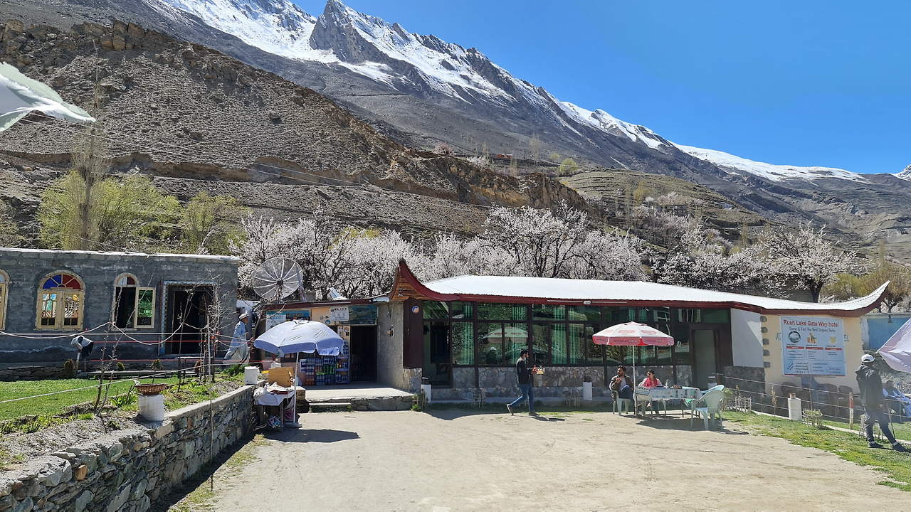 건물 크고말고 뭐 중요한감. 밥만 맛있게 잘 나오면 되지. 벚꽃이 절정기를 살짝 지나고 지는 철이긴 했는데, 여전히 예뻤다. 나즈막한 건물이 설산, 나무들과 되려 더 잘 어울린다. 고층이었으면 자연풍광을 해칠 뻔했겠다.