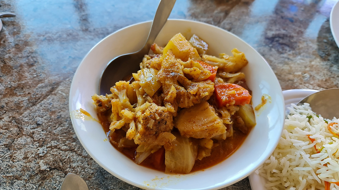 내가 여행하고 있는 곳은 파키스탄 최북단의 길깃 발티스탄주의 훈자 지역이지만, 지명을 넓게 보면 길깃 발티스탄도 카슈미르 지역의 일부이다. 북쪽 요리는 좀 다르려나 했는데 한 나라 안에서 먹고사는 건 다 비슷한 건지 요리도 크게 다르지 않다. 발음이 비슷해서 커리나 카라히가 같은 말인가 싶었는데 커리는 향신료를 걸쭉하게 해서 고기와 야채를 넣어 익혀먹는 요리의 총칭이며 카라히는 둥근 요리냄비를 지칭하는 말로 차이가 있다.