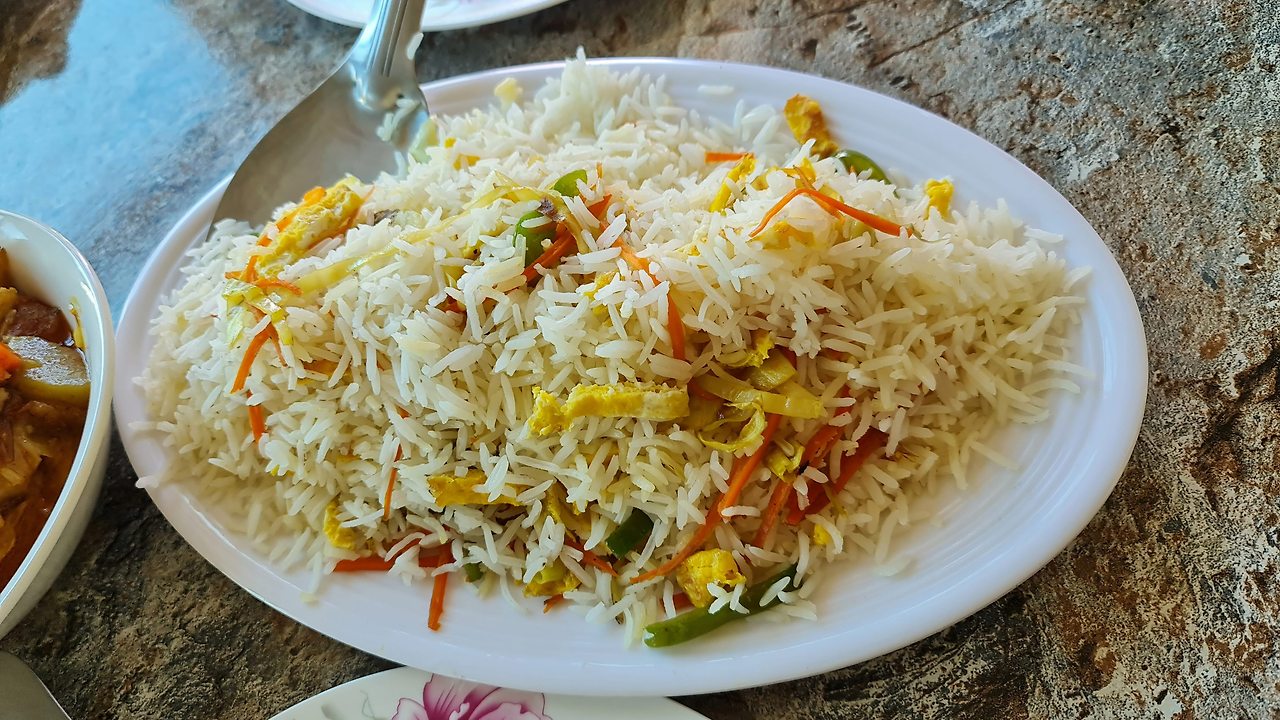 층이 지지 않았으니 비리야니는 아닌 것 같고, 풀라오 아니냐고 물어보니 아니랜다. 계란 고명하고 밥하고 볶은 Egg Fried Rice 계란볶음밥. 그러고 보니 풀라오의 찐밥맛이랑 살짝 다르긴 하다. 현지 음식명이 따로 있나 모르겠지만 언제나 쉬운 영어만 쓰는 우리 가이드님은 "Egg Fried Rice"라고 안내해 주셨다. 쌀이 찰기 없는 안남미인 거 빼곤 한국식 야채 계란 볶음밥하고 별반 다르지 않았지만 원래 안남미는 찰기가 없기 때문에 기름을 많이 두를 필요도 없고 그래서 더 담백한 맛이 났다.