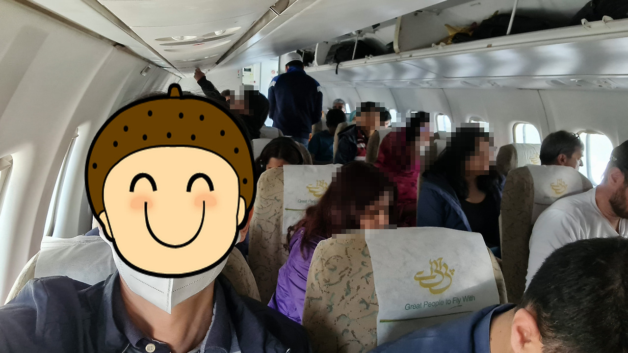 비행기가 몇 년식인지 확인할 길이 없었으나, 여기저기 무척 낡았다. 공기조화장치 송풍구엔 때가 꼬질꼬질하고 식판 트레이에는 잔 실금이 촥촥 가 있는 게 세월의 무게와 흔적이 느껴진다. 금속이나 플라스틱이 파손될 정도의 큰 충격을 받지 않아도 작은 충격에도 살살 금이 가는 현상을 전문용어로 피로파괴(Fatigue)라고 하는데, 이런 현상 때문에 비행기의 기골은 정해진 운영수명시간에 도달하면 더 이상 운영하지 못한다. 식판 트레이에 금 간 걸 보고 이 비행기 기골도 비슷할 텐데... 하는 생각이 들어 조금 불안해지긴 했지만, 이런 결함을 사전에 점검하고 정비하기 위해 비행기는 고장이 나든 안 나든 정해진 운영시간을 달성하면 의무적으로 창정비를 받아 결함유무를 점검하는 절차를 거친다. 조금 불안한 마음이 들지만 믿고 타시란 말씀.