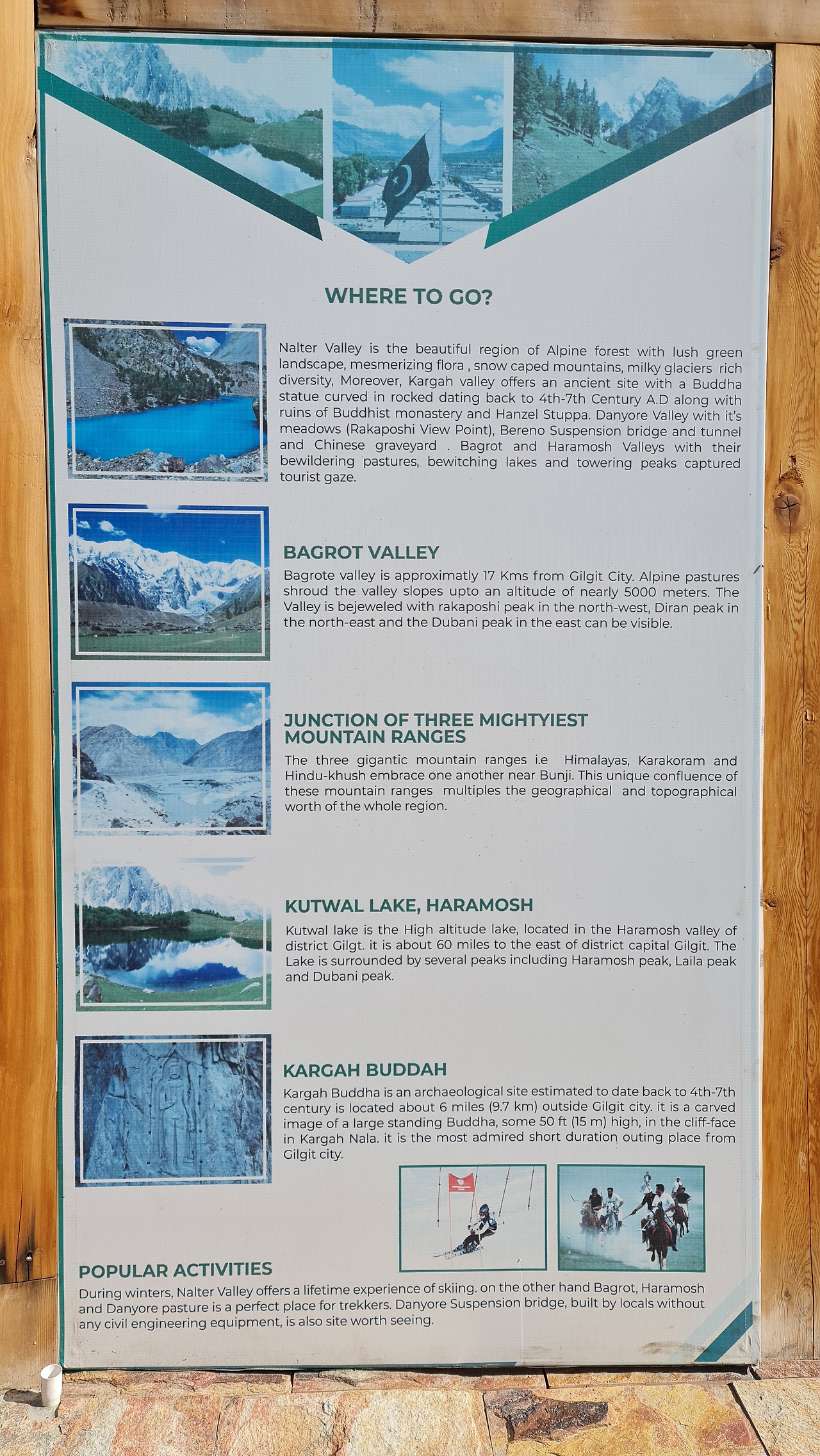 길깃 관광은 처음부터 염두에 아예 안 두고 온 일정이라 관광지도에 안내된 뷰 포인트에서 3개 산맥 합류지점(카라코람 하이웨이 오는길에 봤었다.)을 제외한 나머지는 한 군데도 가보질 못했다. 스위스 부럽지 않은 자연경관이 뷰 포인트인 건 알겠는데, 영국인 묘지(British Cemetery)가 왜 관광지도에 제1순위로 소개되어 있는 건지는 잘 모르겠다. 한국식으로 생각하면 인천공항에 내렸는데 일본인 공동묘지가 공항에서 나눠준 관광지도에 제일 먼저 소개되어 있는 느낌?