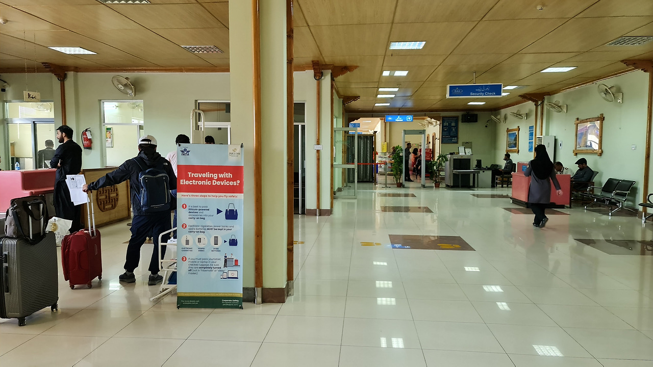 한국 소도시 지방공항 느낌과 별반 다르지 않은 길깃 공항. 차이점이 있다면 빡센 보안검색이다.