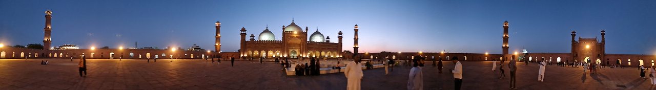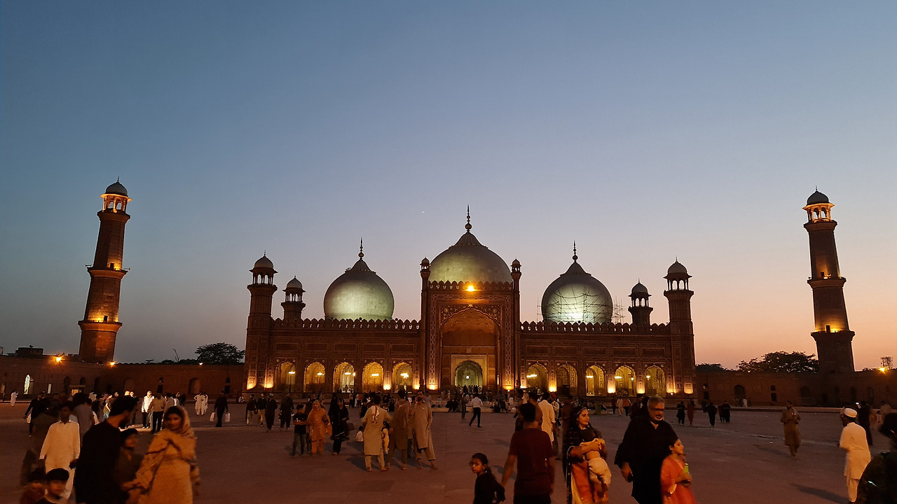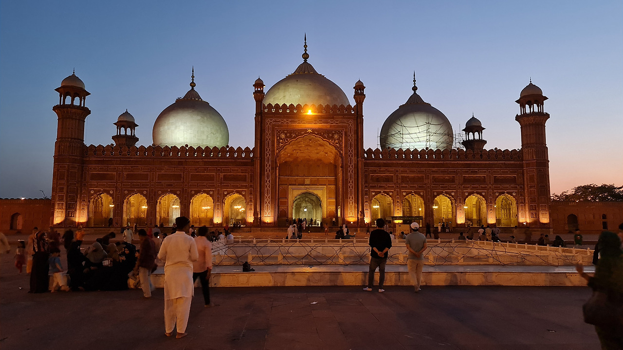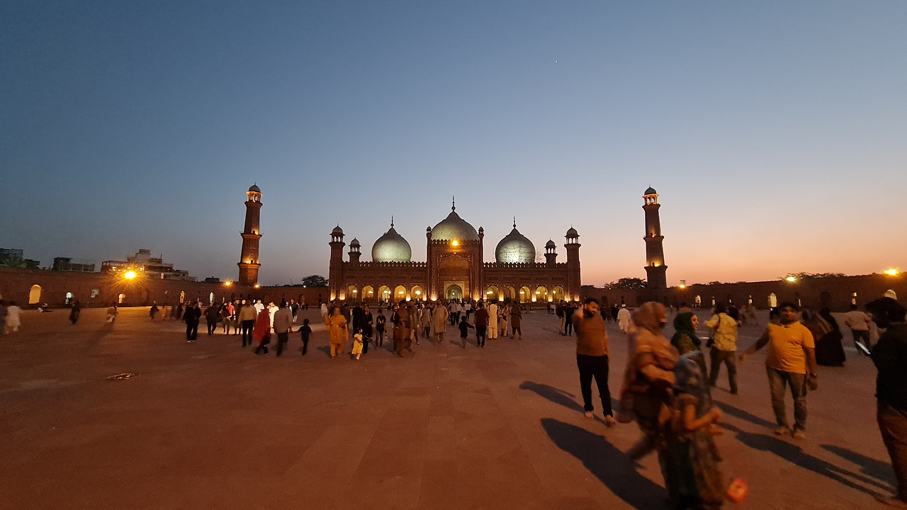 모스크 본당은 ㅁ자 회랑과 연결되어 있다. 북쪽의 회랑을 거닐다 보면 미나레-파키스탄(Minar-e-Pakistan, 파키스탄 건국 기념 타워)이 불을 밝히고 있는 모습이 마치 액자처럼 보인다.