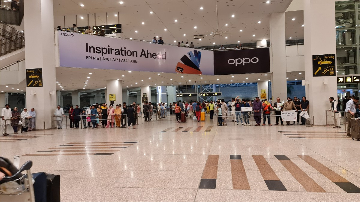 이슬라마바드 공항은 공항을 직접 이용하는 여행객이 아니라면 환영인파든 환송인파든 공항건물에 들어올 수는 없고 저렇게 공항건물 밖 안전펜스 넘어서 기다려야 한다. 아마도 다 테러방지 목적이려니 싶다.