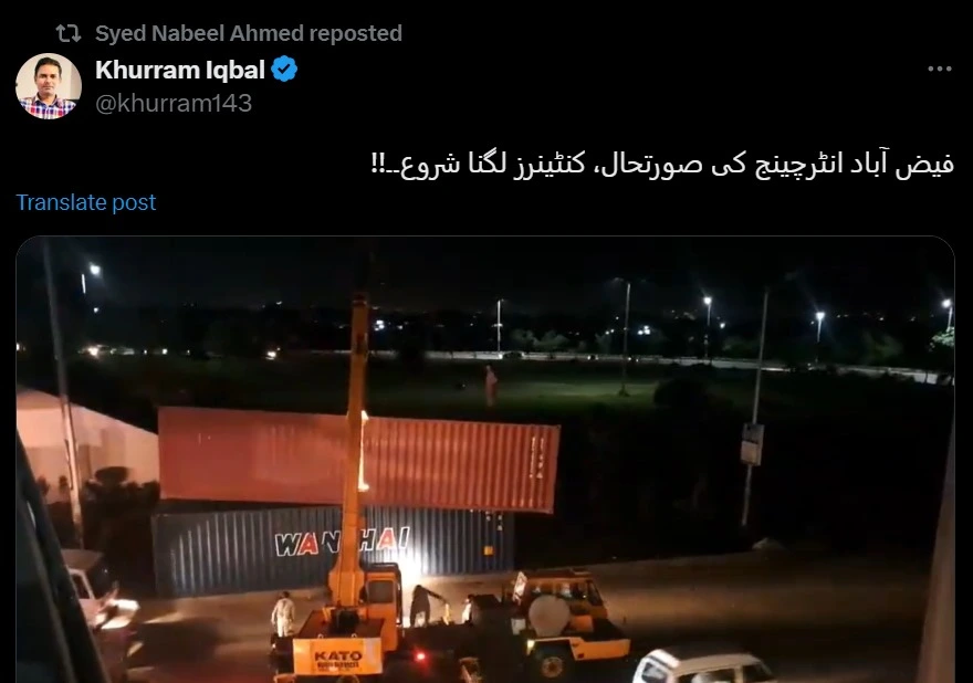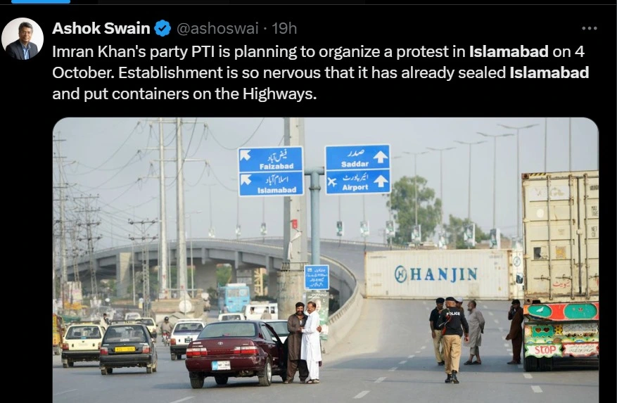 오는 10월 4일 금요일에, 임란 칸의 PTI 정당이 시위를 계획하고 있습니다. 컨테이너로 도로가 막혀서 벌써 불편이 초래되고 있군요.