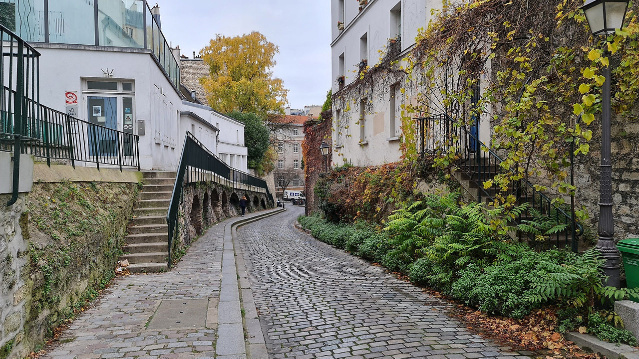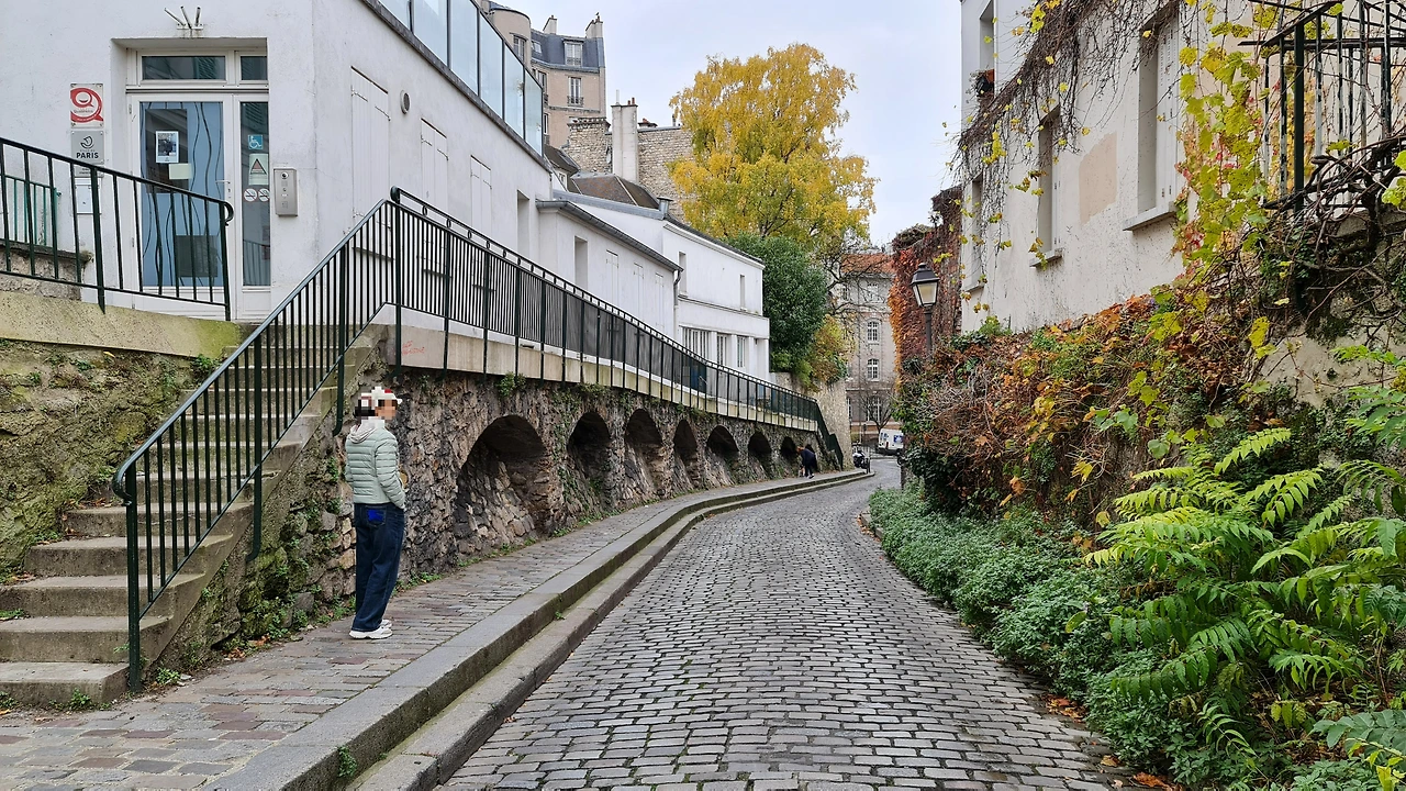 몽마르트르 골목길은 좁습니다. 차 한 대가 겨우 다닐 수 있는 폭밖에 안 됩니다.