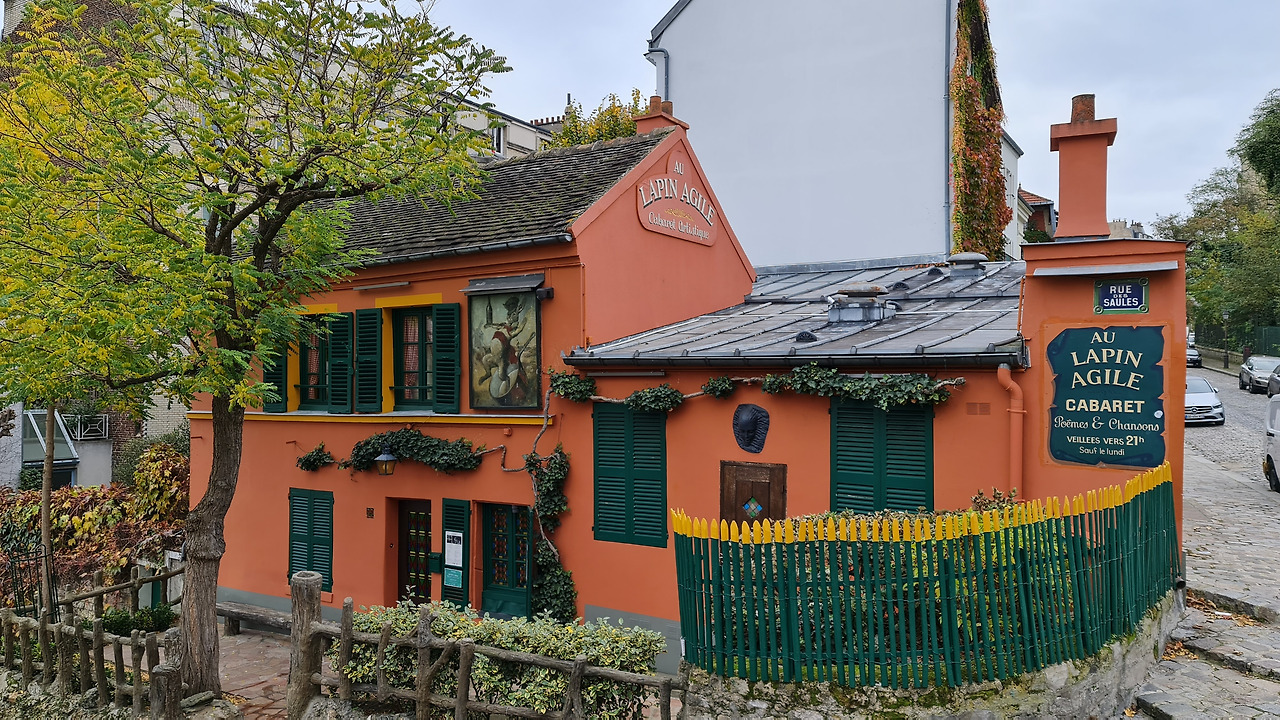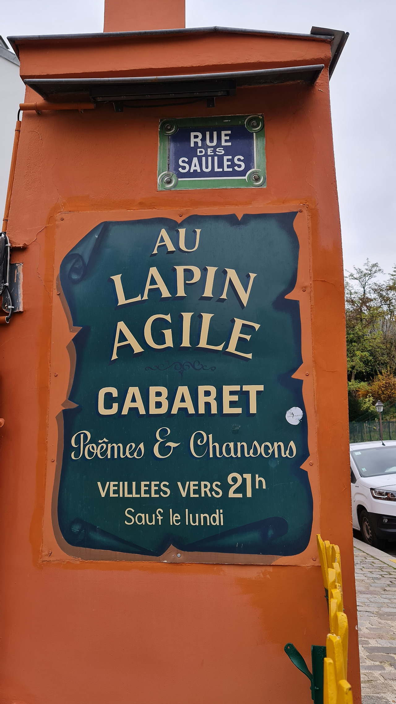 이 냄비 위의 토끼 그림은 프랑스 풍자 만화가였던 'Andre Gill-앙드레 질'이란 사람이 1875년 그린 그림으로 이 그림이 붙고나서부턴 'Lapin a Gill-질의 토끼'로 불리다가 이게 그대로 카바레 이름이 되어 'Cabaret Au Lapin Agile'로 불리게 되었다고 합니다.