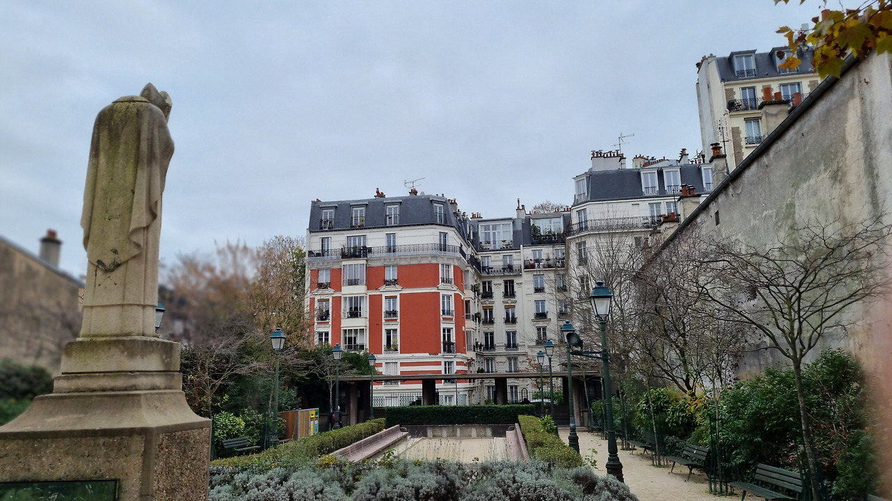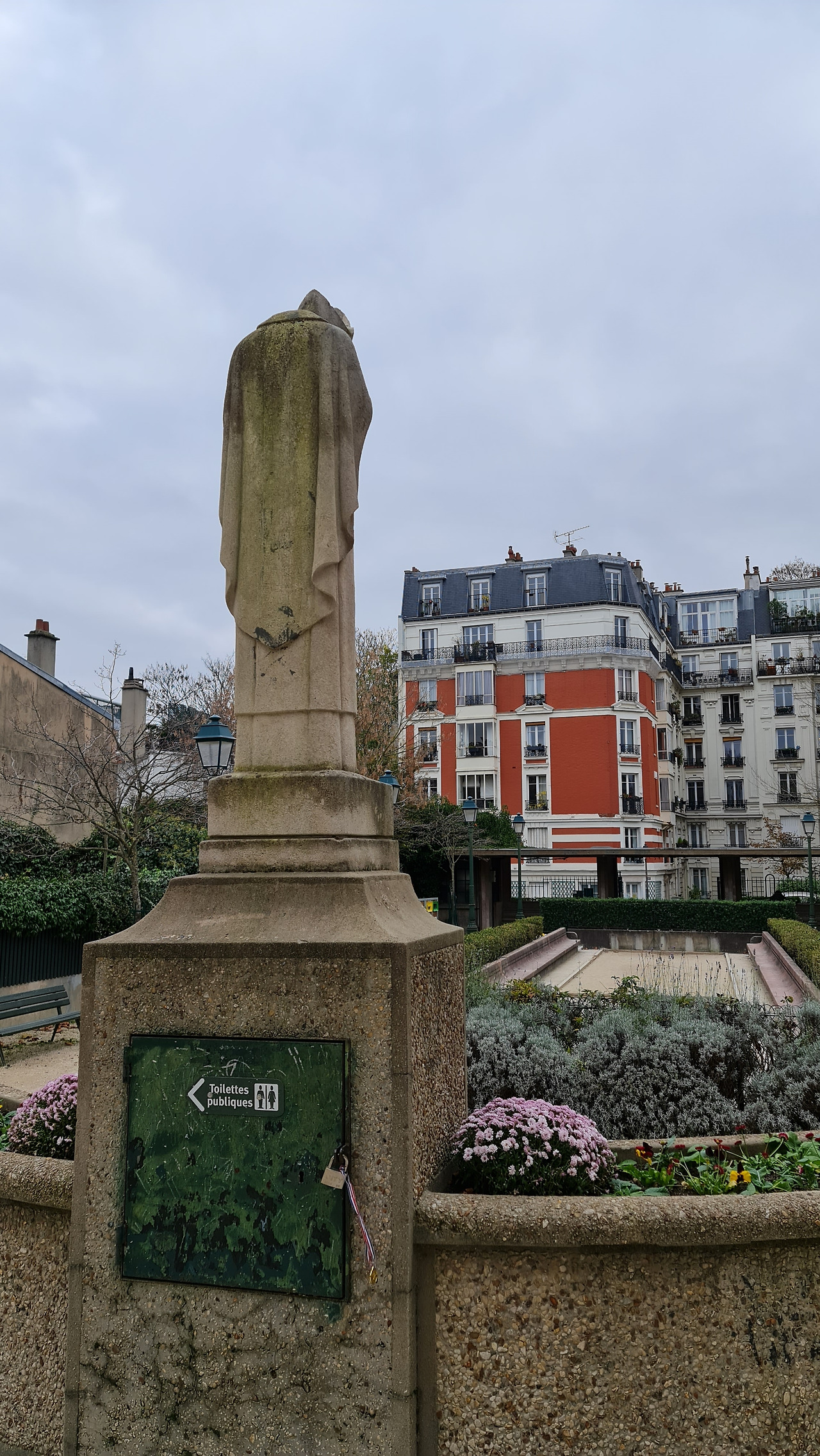 앞에서 봤을 땐 "목이 좀 짧아 보이는데?" 했었는데, 측면에서 이걸 보고 깨달았어요. 순교자의 동상이구나~라고. 역시 지도를 찾아보니 순교자 생드니 동상이 맞군요.