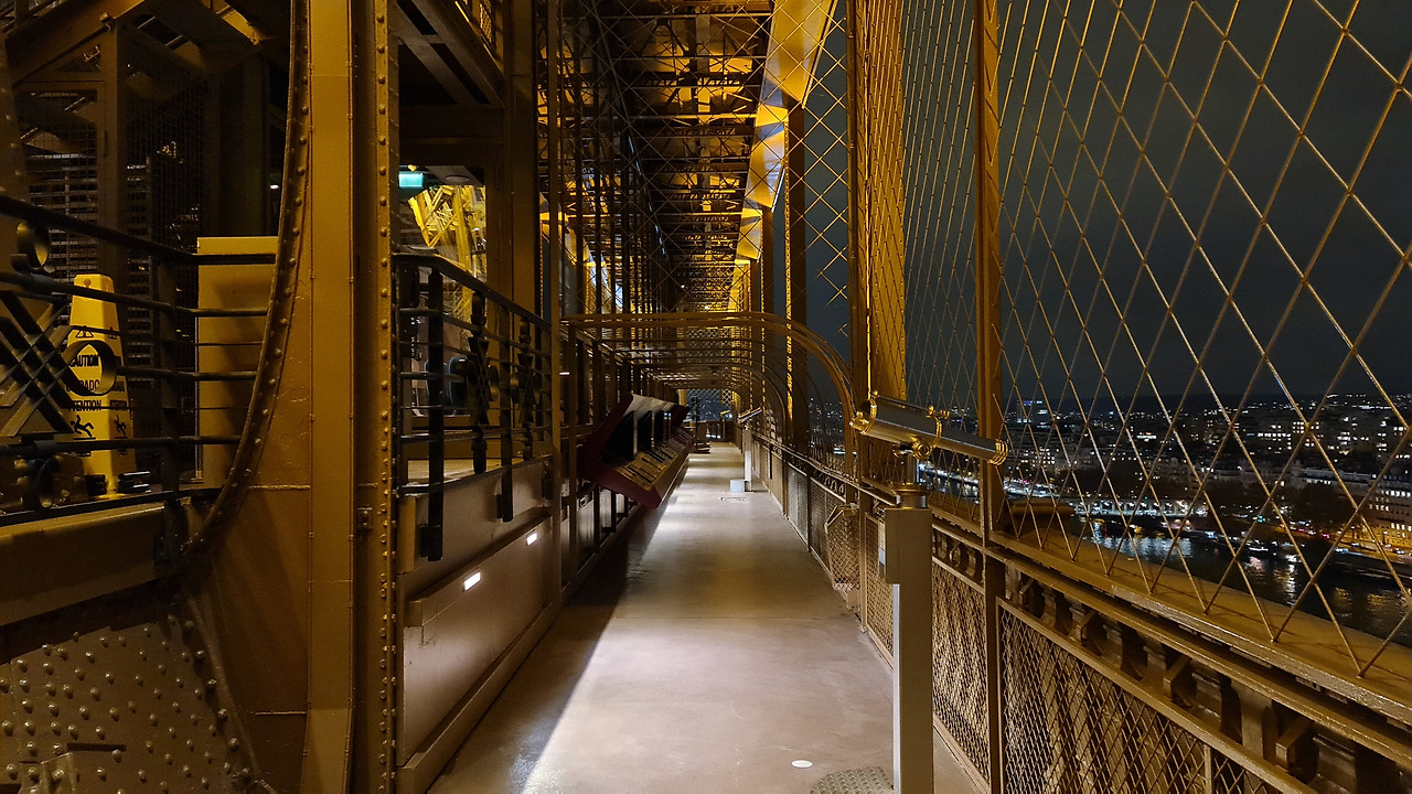 에펠탑의 내부 관람시각은 밤 11시까지 늦게 운영합니다만, 유독 이 시간(당일 18:48)엔 사람들이 쏴악 빠져나가던 시간이었습니다. 정말 진귀한, 관람객이 없는 1층 전망대 사진도 남겨봅니다.