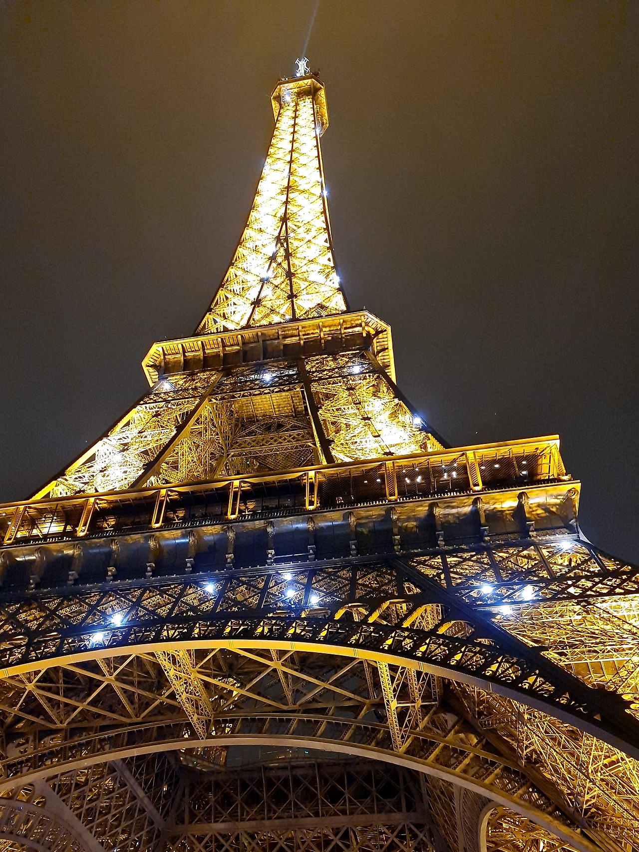 일몰 이후 이렇게 노란색 야간조명을 점등하고 매 정각 5분 간 시행하는 반짝반짝 불빛쇼가 정말 예쁘긴 합니다. 그리고 매일 새벽 1시에는 다른 조명 다 끄고 하얀 전구만 반짝반짝 켜지는 특별한 조명쇼를 하는데 "화이트 에펠"이라고 불립니다.