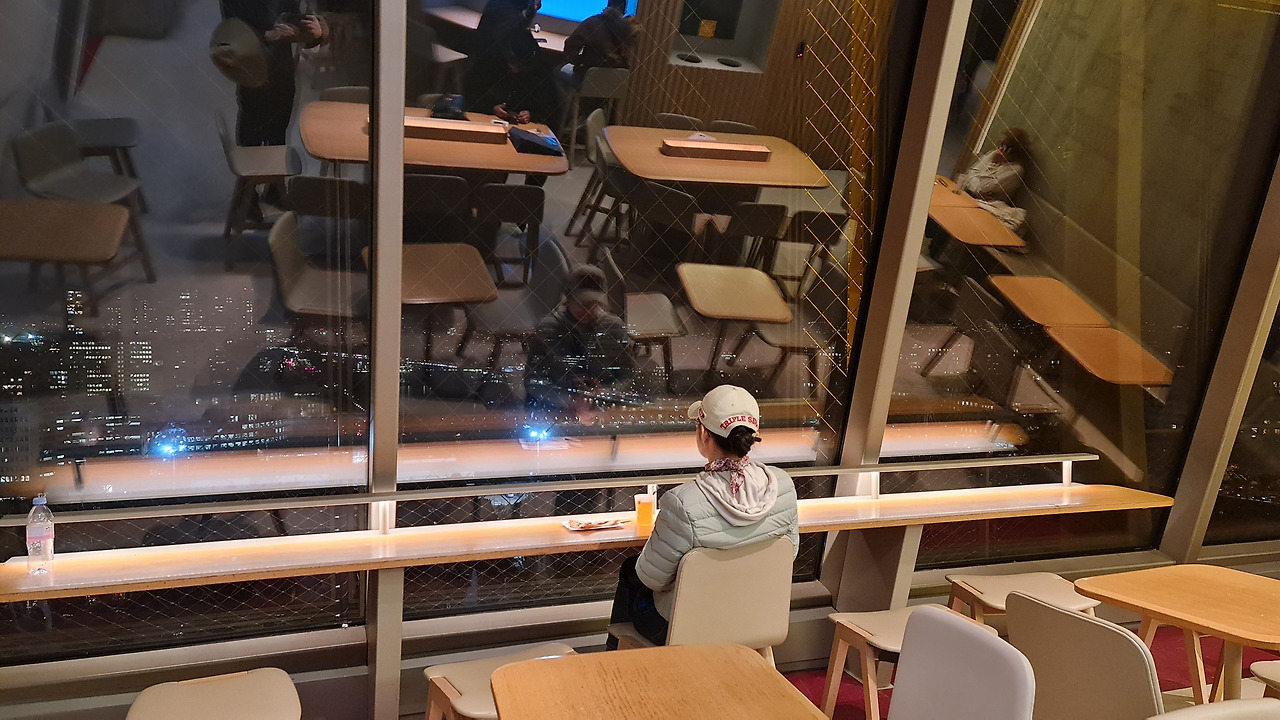 암튼 고렇게 꼭대기층 대충 한 바퀴 둘러보고, 계단 통해 내려와서 다시 엘리베이터 타고 2층 전망대로 내려왔습니다. 슝~