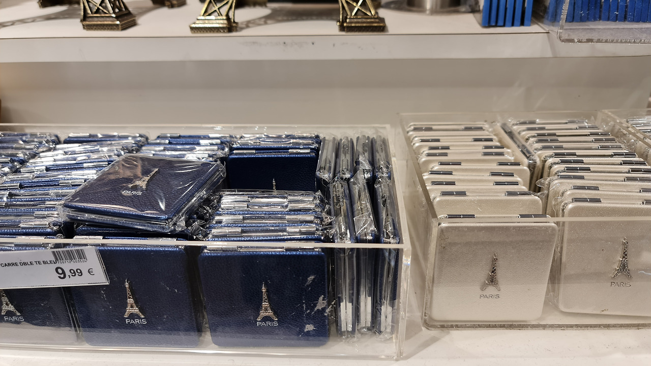 개인적으로 요 에펠탑 로고가 박힌 화장거울이 가장 마음에 들었습니다만... 9.99유로, 1만 5천원.