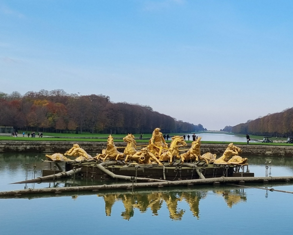 파리 근교에 있는 베르사유 궁전 찾아가서 궁전 내부 탐방한 후 정원 한 복판에 있는 대운하(Grand Canal) 관람하는 이야기.