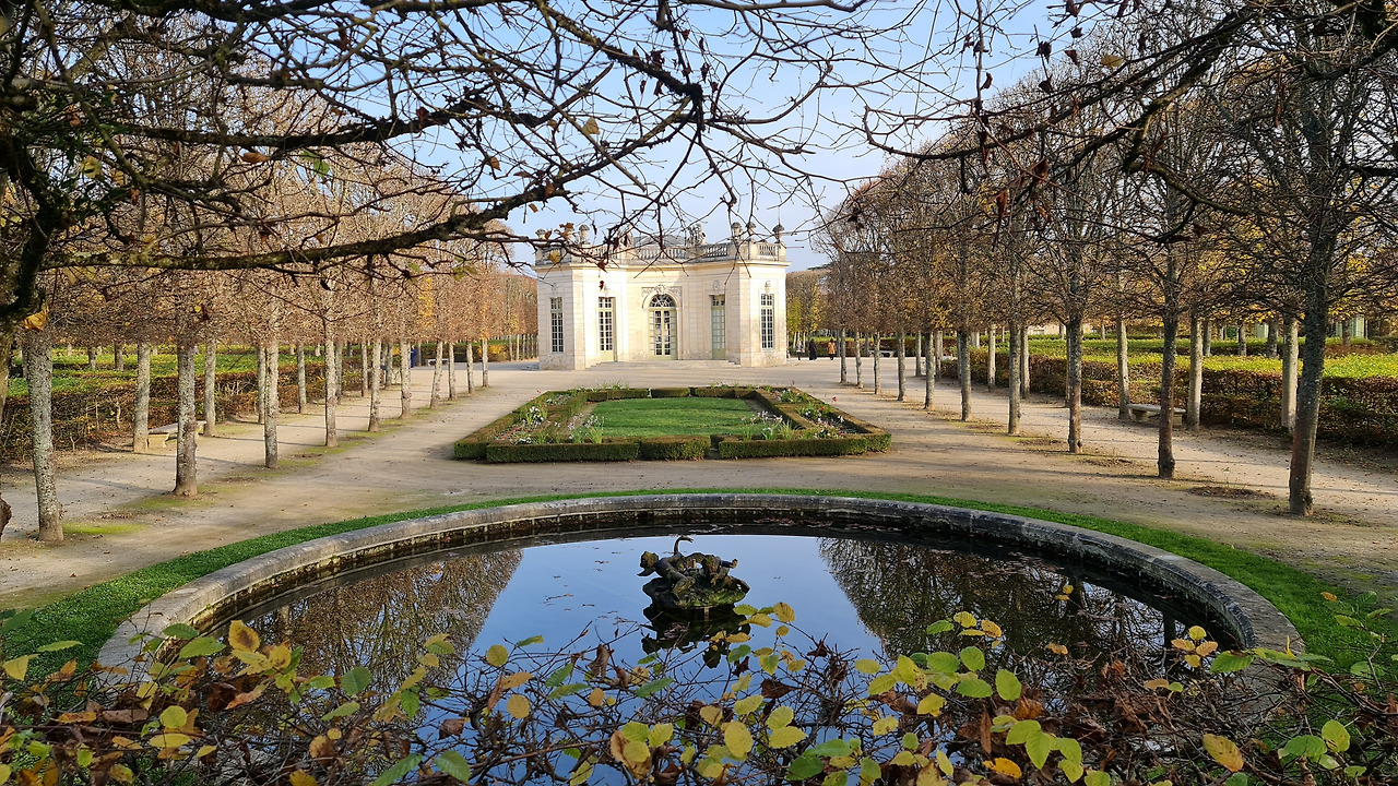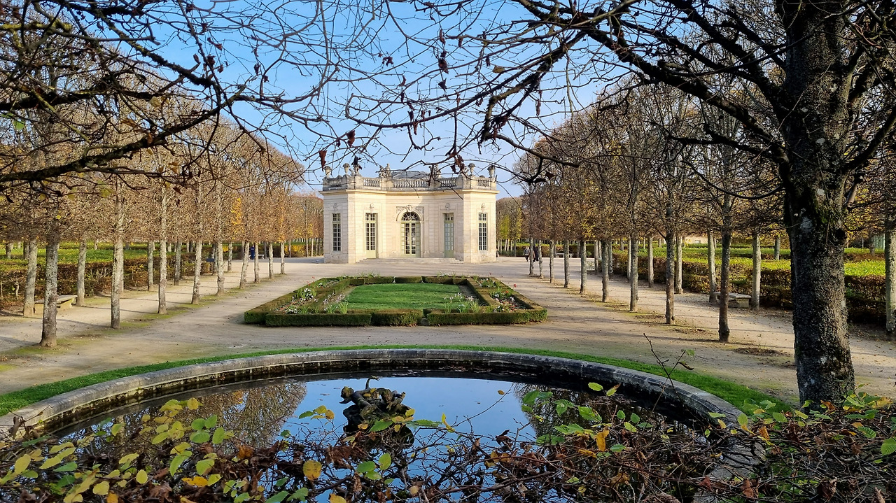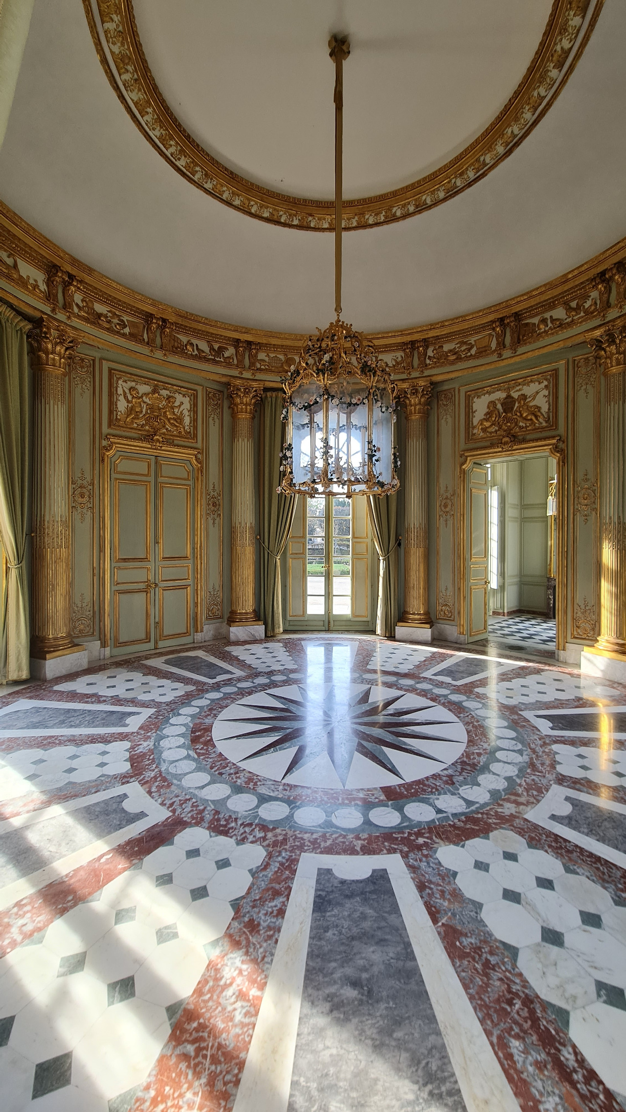 파빌리온의 실내는 개방되어 있진 않았습니다만, 창이 있어 내부는 볼 수 있었어요. 방 자체는 그랑 트리아농의 Round Room과 비슷하네요. 바닥 문양도 닮았고요. 실내 마감이 금장이라 좀 더 화려한 느낌이 있습니다.