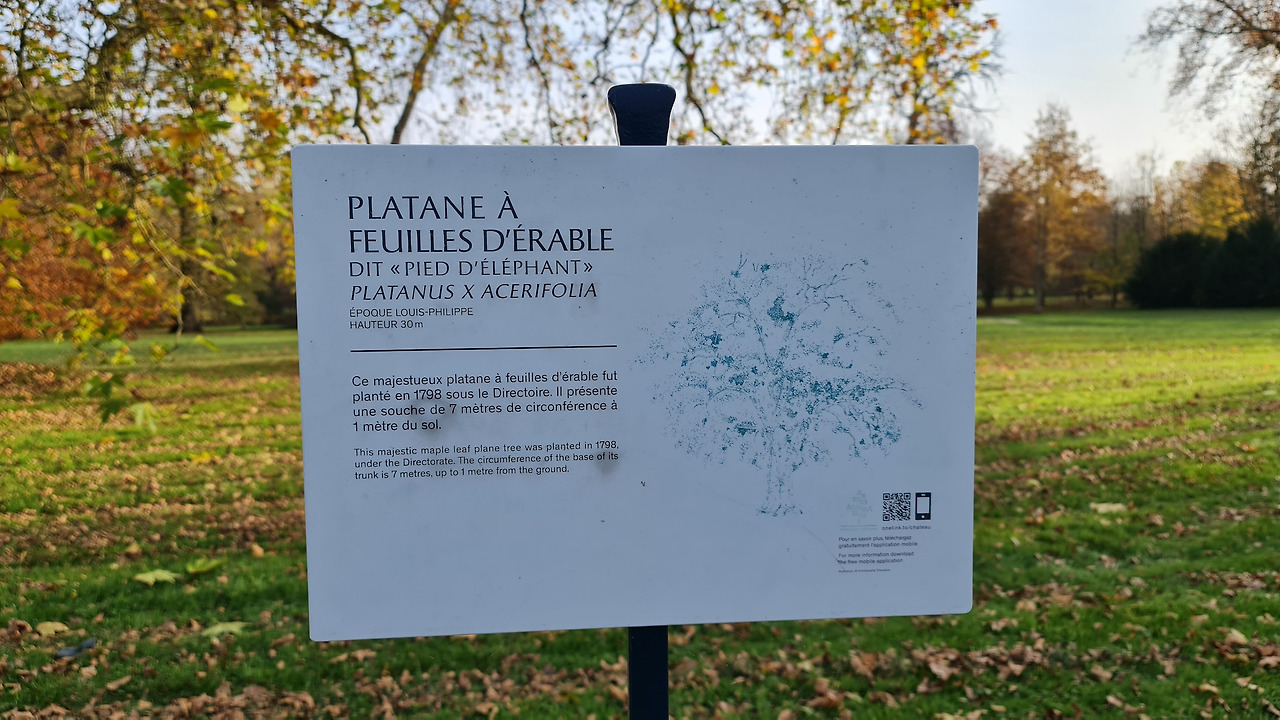 이 장엄한 단풍잎 플라타너스 나무는 1798년에 관리국의 감독 하에 심어졌습니다. 줄기 바닥의 둘레는 땅 위 1m에서 재었을 때 7m이다.