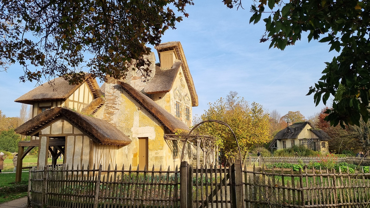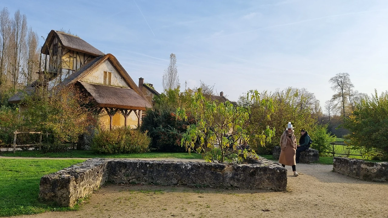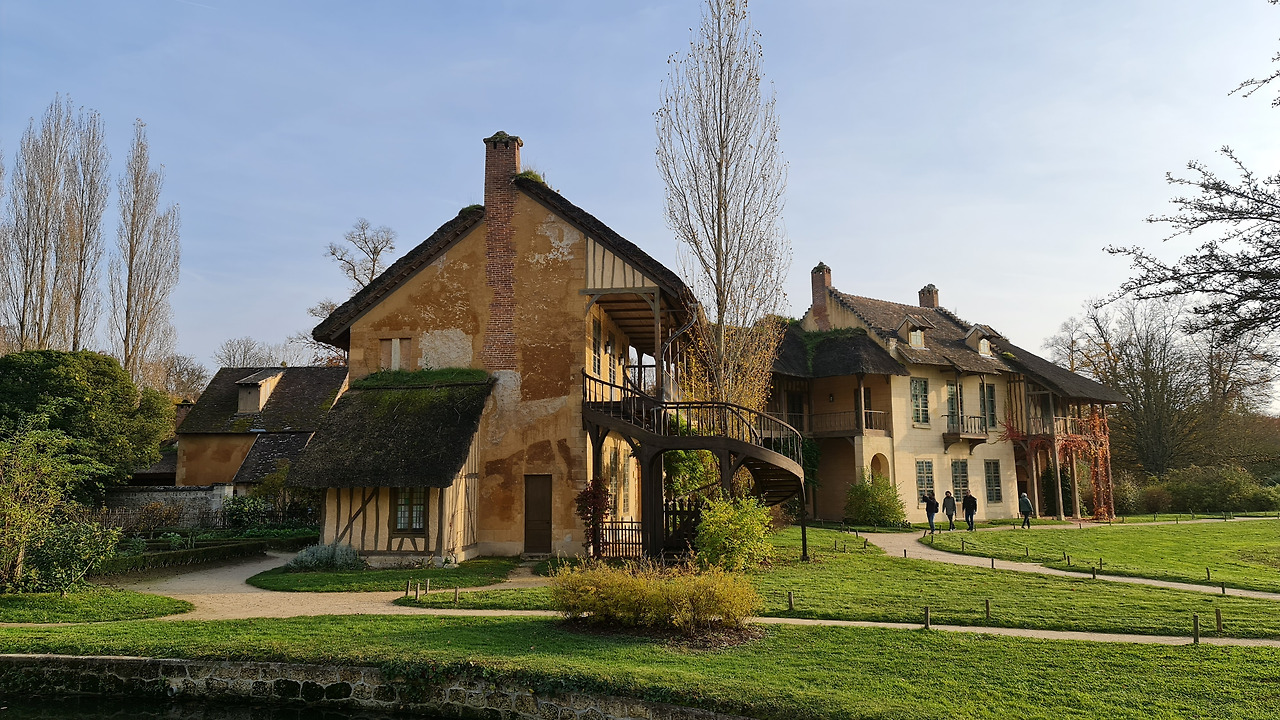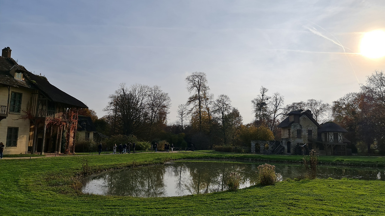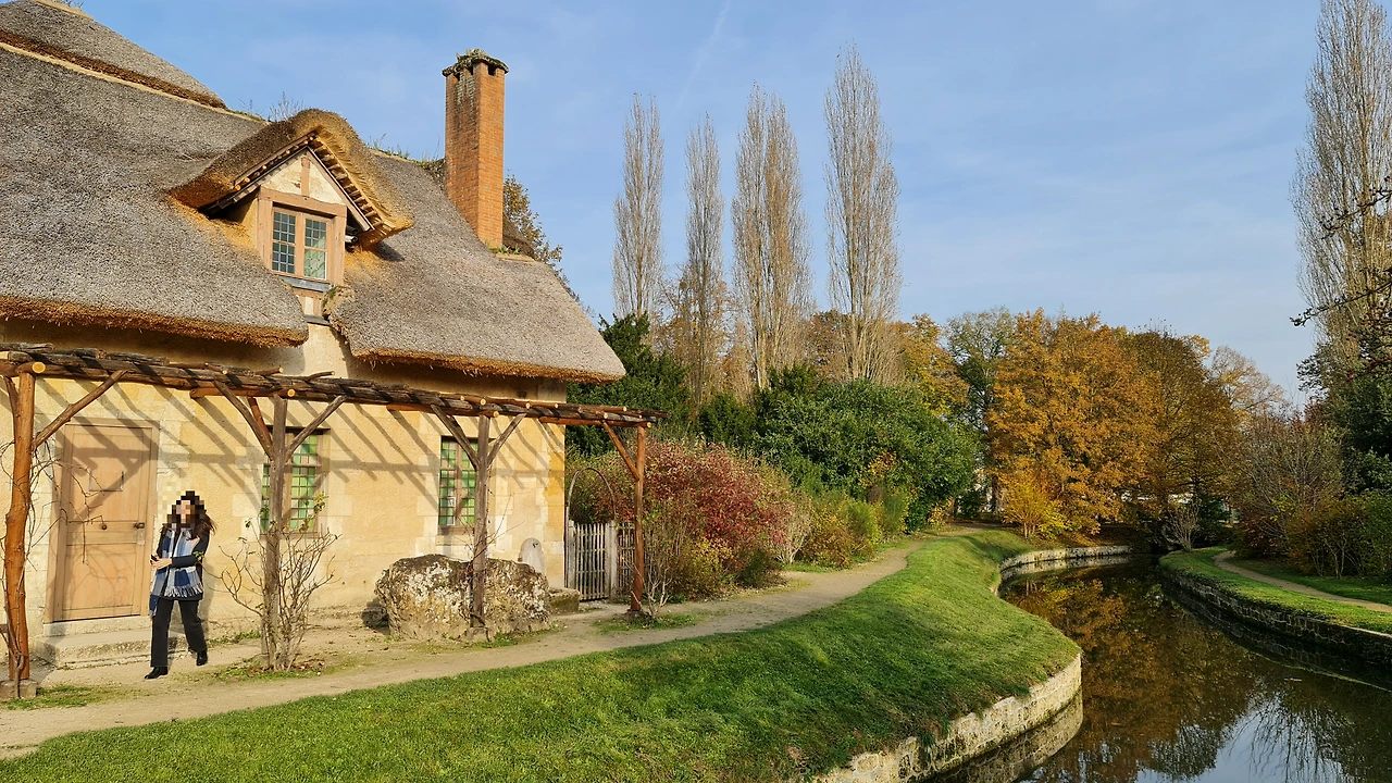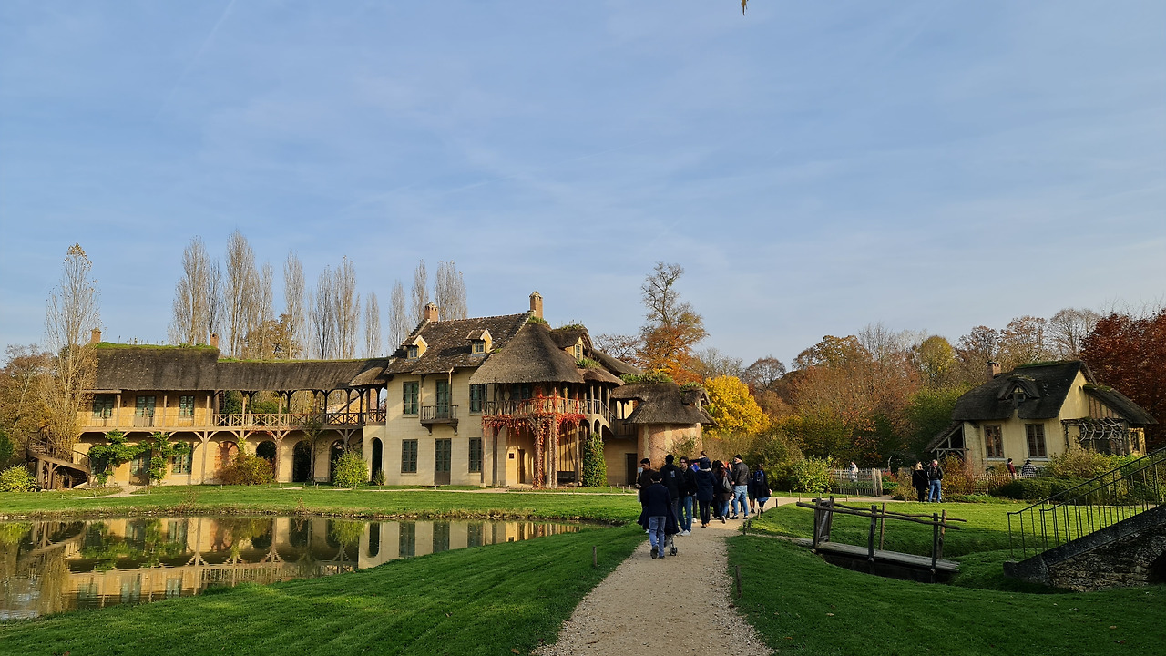 '왕비의 촌락(Queen’s Hamlet, Hameau de la Reine)'은 어린 시절 시골 고향을 그리워하던 마리 앙투아네트 왕비를 위해 1783년 촌락 형식으로 인위적으로 조성된 시골체험마을입니다. 촌락은 호수를 기점으로 10여 채의 농가로 구성되어 있으며 아기자기하면서도 소박하지만 자연과 매우 잘 어울리는 풍광을 자랑하는 곳입니다. 마리 앙투아네트 왕비는 실제로 이곳에서 낚시, 소 젖 짜기, 농작물 재배와 같은 시골일을 '체험'해 보았다고 알려져 있어요. 실제 농사일을 했다기보단 대부분의 농사일은 실제 농부들에게 맡기고 유흥 삼아 경험해 보았다고 하는 것이 맞을 겁니다.