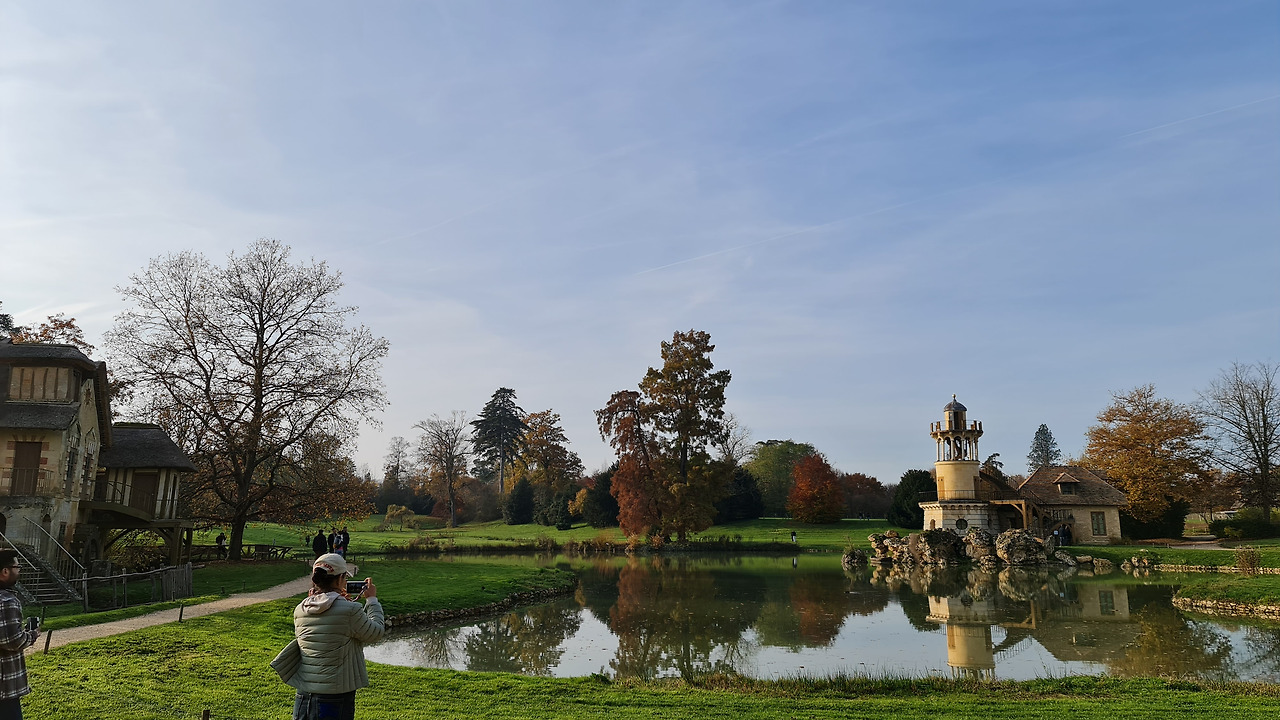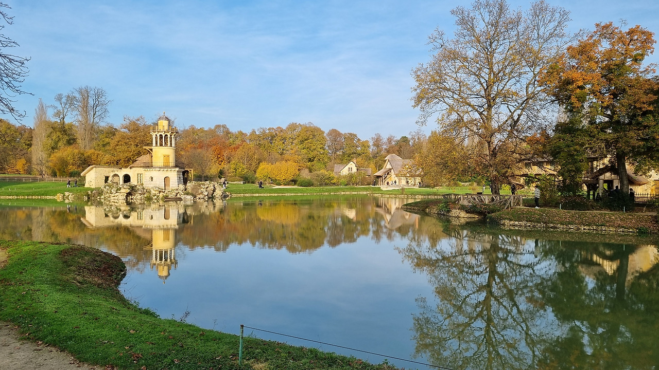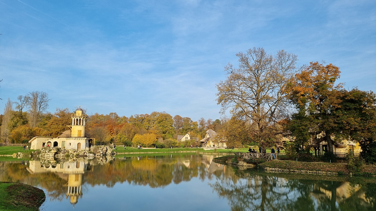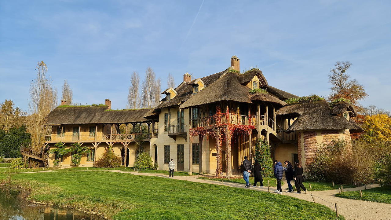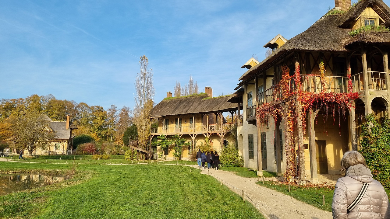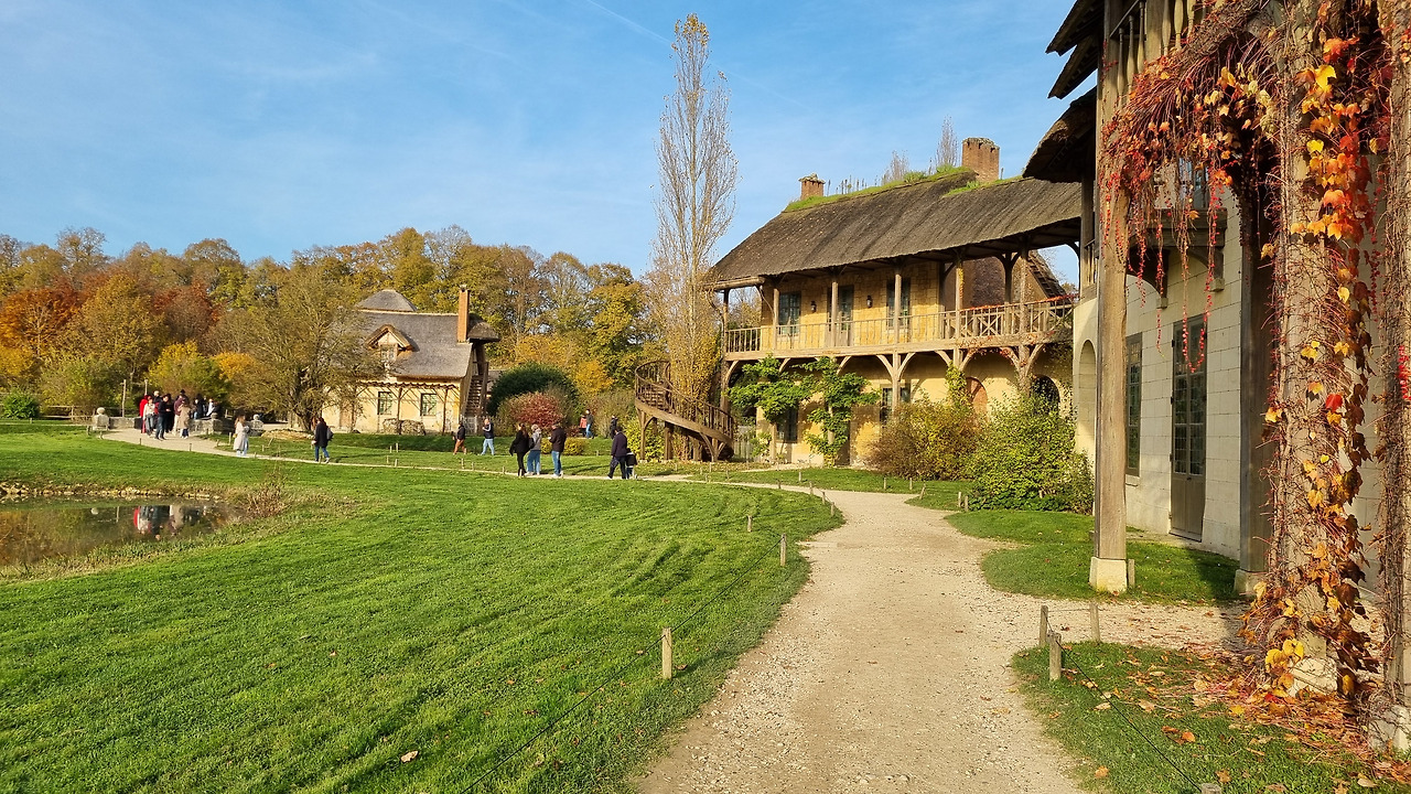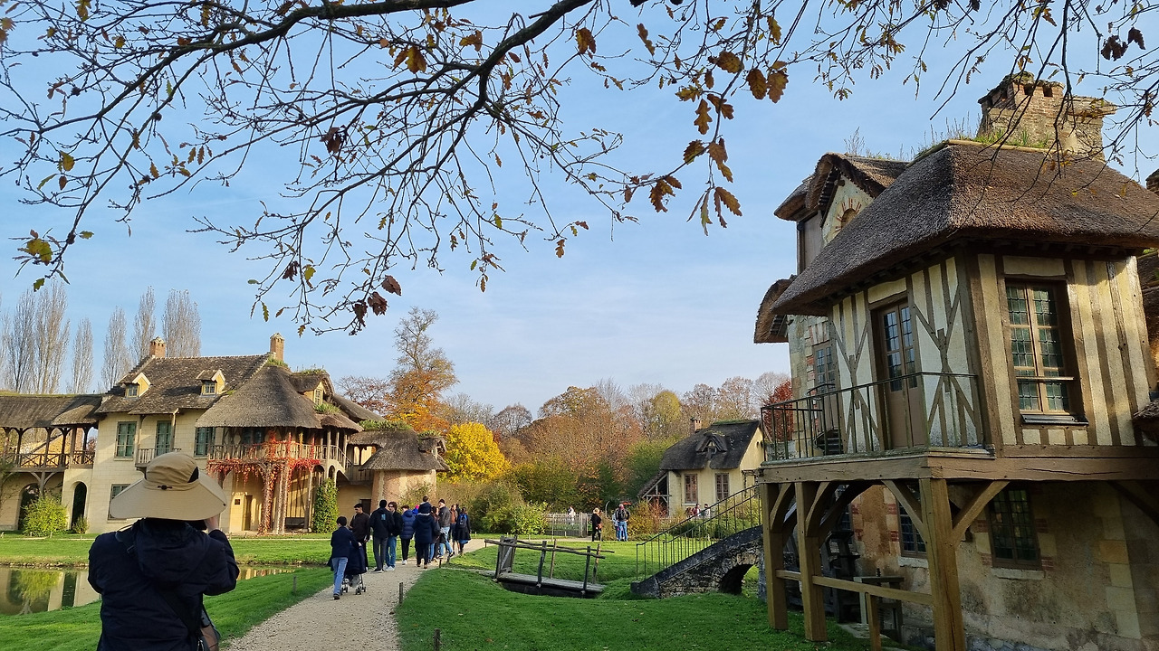 '왕비의 촌락(Queen’s Hamlet, Hameau de la Reine)'은 어린 시절 시골 고향을 그리워하던 마리 앙투아네트 왕비를 위해 1783년 촌락 형식으로 인위적으로 조성된 시골체험마을입니다. 촌락은 호수를 기점으로 10여 채의 농가로 구성되어 있으며 아기자기하면서도 소박하지만 자연과 매우 잘 어울리는 풍광을 자랑하는 곳입니다. 마리 앙투아네트 왕비는 실제로 이곳에서 낚시, 소 젖 짜기, 농작물 재배와 같은 시골일을 '체험'해 보았다고 알려져 있어요. 실제 농사일을 했다기보단 대부분의 농사일은 실제 농부들에게 맡기고 유흥 삼아 경험해 보았다고 하는 것이 맞을 겁니다.