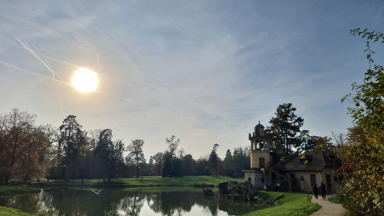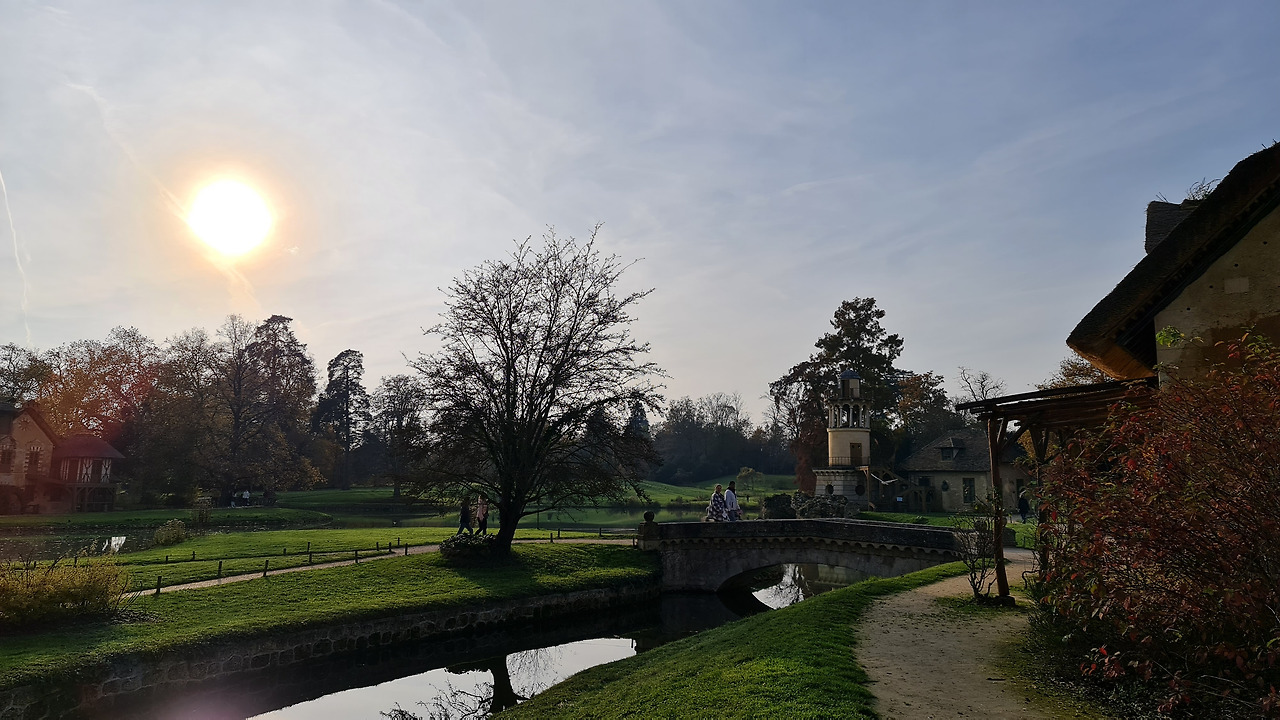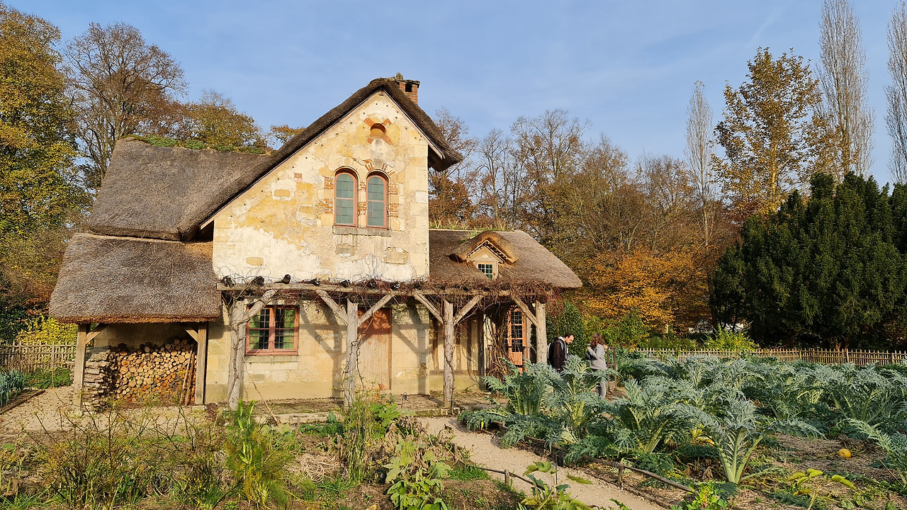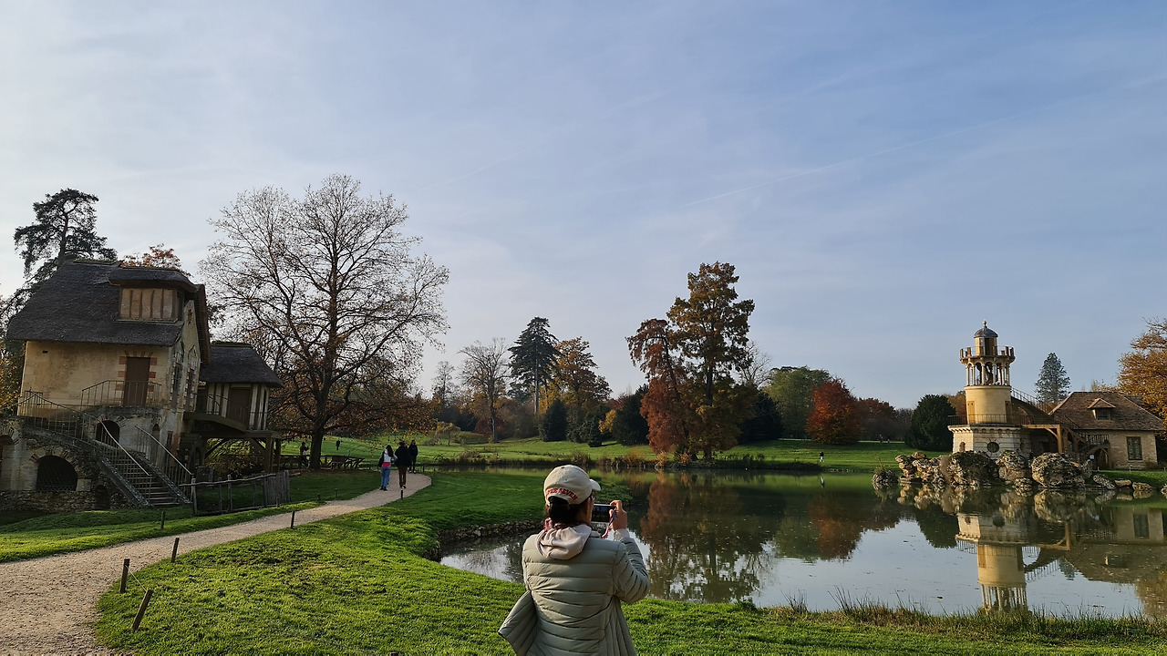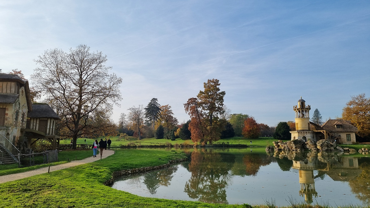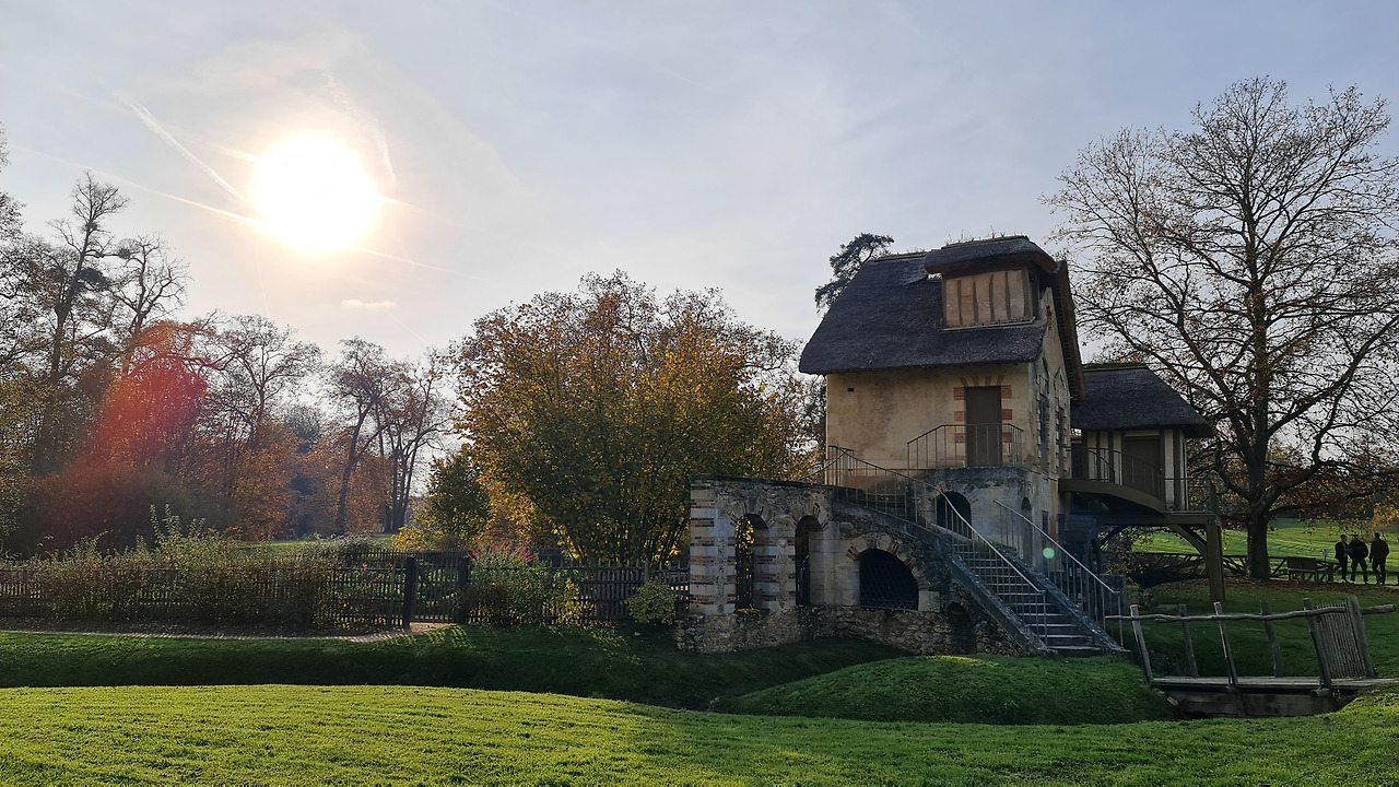 '왕비의 촌락(Queen’s Hamlet, Hameau de la Reine)'은 어린 시절 시골 고향을 그리워하던 마리 앙투아네트 왕비를 위해 1783년 촌락 형식으로 인위적으로 조성된 시골체험마을입니다. 촌락은 호수를 기점으로 10여 채의 농가로 구성되어 있으며 아기자기하면서도 소박하지만 자연과 매우 잘 어울리는 풍광을 자랑하는 곳입니다. 마리 앙투아네트 왕비는 실제로 이곳에서 낚시, 소 젖 짜기, 농작물 재배와 같은 시골일을 '체험'해 보았다고 알려져 있어요. 실제 농사일을 했다기보단 대부분의 농사일은 실제 농부들에게 맡기고 유흥 삼아 경험해 보았다고 하는 것이 맞을 겁니다.