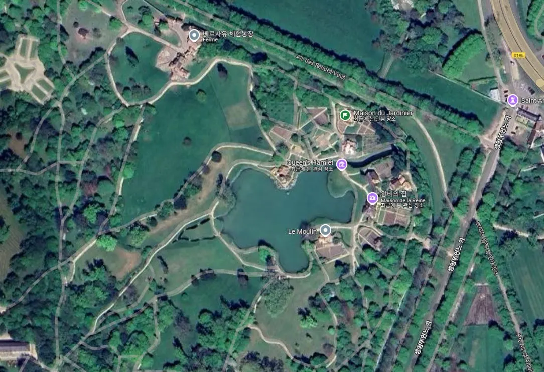 '왕비의 집' 주변으로 예쁜 집들이 옹기종기 모여있는 요 촌락에서 300여 m만 더 들어가면 '베르사유 체험농장'이 있어요. 여기가 진짜 농사짓고 가축 기르고 하는 곳이거든요. 구글맵을 찍어보니 요즘에도 축사 운영을 하나 봅니다. 암튼 여길 못 보고 와서 두고두고 아쉽군요. 왕비의 촌락에서 저길 가 보라고 안내하는 입간판도 없었고 안내지도에도 힘주어 강조되어 있지 않은 곳이거든요. 이래서 여행전에는 디테일한 공부가 필요한 법이지만 다 미리 공부하기엔 너무 피곤쓰...ㅠㅠ