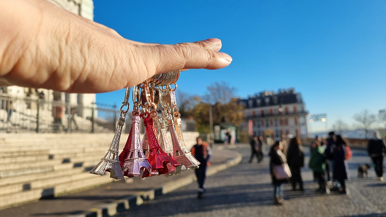 에펠탑 기념품을 파는 좌판이 벌써 벌어져있네요.