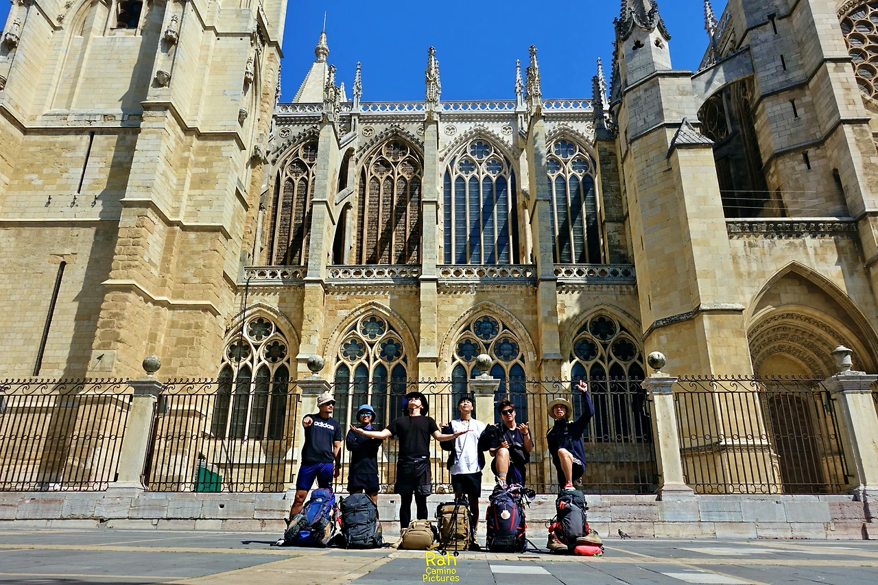 약 일주일 만에 친구들과 모두 모였다. 레온 대성당 앞에서.