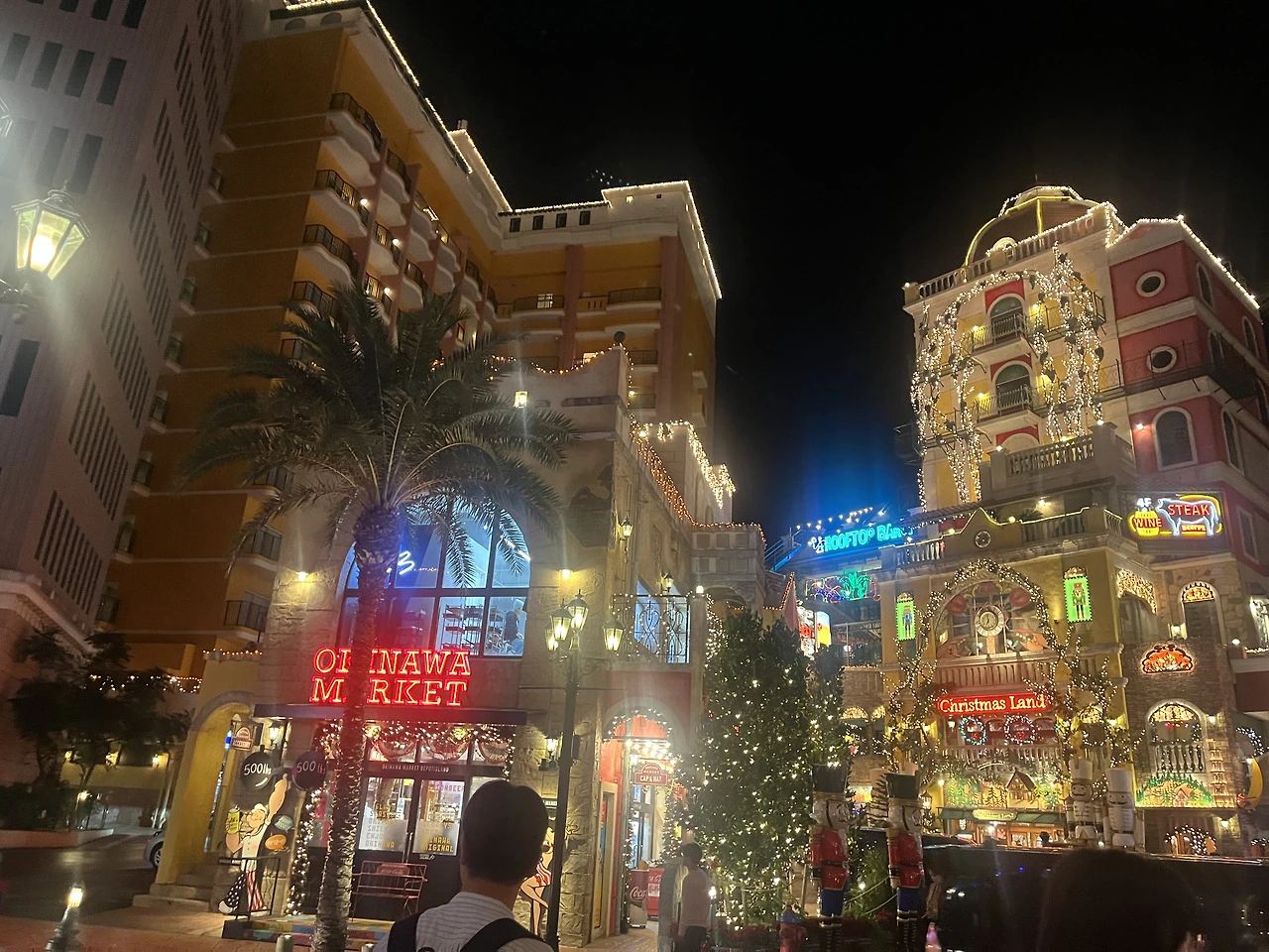 남편의 감기약을 먼저 구매하고, 오키나와에 오면 꼭 먹어야 한다는 타코라이스를 먹었다. 타코라이스에 대한 안 좋은 추억이 있어 반신반의하던 남편의 이번 여행 최고 맛도리 타코라이스! 만족스러운 저녁식사 후 구경하는 크리스마스 시즌의 아메리칸 빌리지. 역사적 배경은 슬프지만 하루 구경하기에 눈과 마음은 너무나 즐거운 곳이었다.