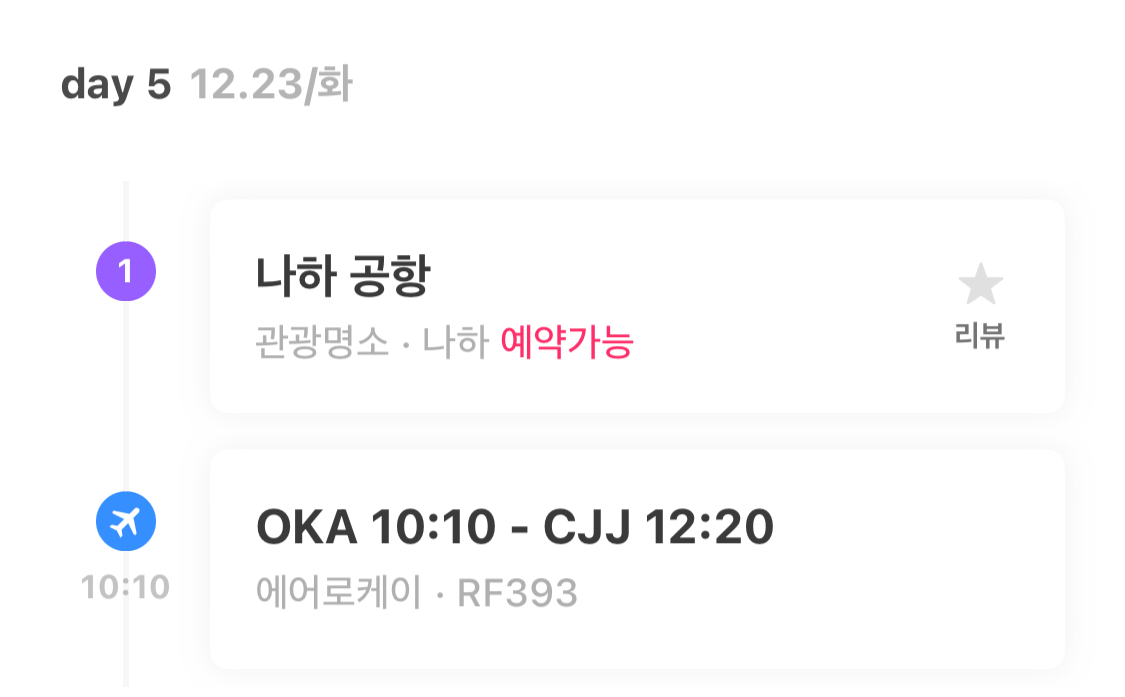 청주공항으로만 운행하는 에어로케이로 예약을 했었는데, 그 항공사는 전날이나 당일에 알림톡이 안 오는 항공사였고.. 나는 트리플 어플을 몇 번을 확인했으나 12시 출발로 이미 머릿속에 잘못 입력되어 몇 번을 봐도 오정보가 고쳐지지가 않았던 것이다... 내가 몇 번을 마지막날 비행에 관해 이야기했어도 남편은 한 번을 자신의 폰에 있는 항공 정보를 확인할 생각을 하지 않았던 것이고......