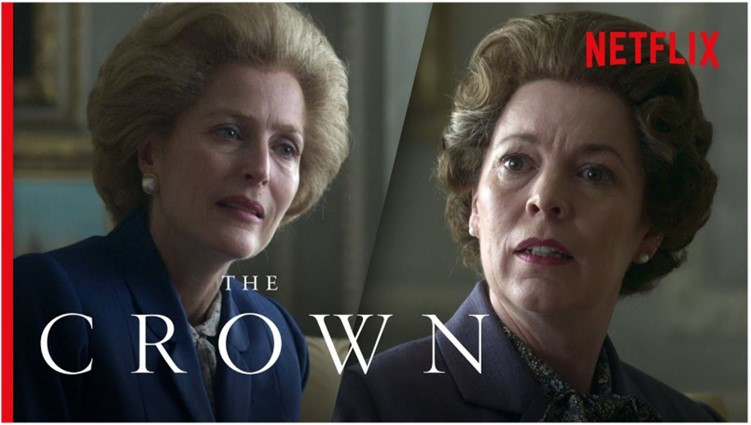 영화 <철의 여인>은 마가렛 대처가 지방 의회 의원에서 총리로 나서는 과정을 담아 인물의 성장과 변모의 과정을 그렸다면, 넷플릭스 오리지널 시리즈 <더 크라운>에서 그려지는 마가렛 대처는 이미 총리로서 선출된 후 거침없이 행정을 펴나가는 모습을 그린다.