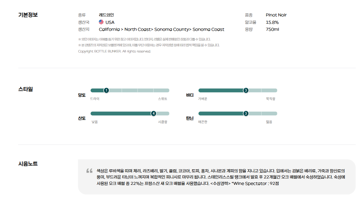 소노마 코스트에서 나오는 피노 누아에 대한 평가도 좋은 편이라 기대가 있었다. 데일리샷에서 예약 걸고, 내가 사는 동네에서 송도 와인샵까지 원정 가서 픽업해 왔다. 10만 원짜리를 모시러 가는 거니까 자세가 달랐다.