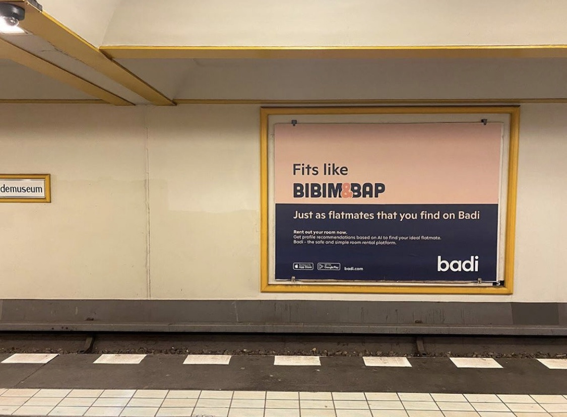Fits Like 'BIBIM & BAP'. 비빔과 밥처럼 잘 어울리는 것처럼 바디에서 저런 플랫 메이트를 찾으라는 카피 문구. 한국인이 보았을 때는 문법 오류지만 너무 귀엽다.